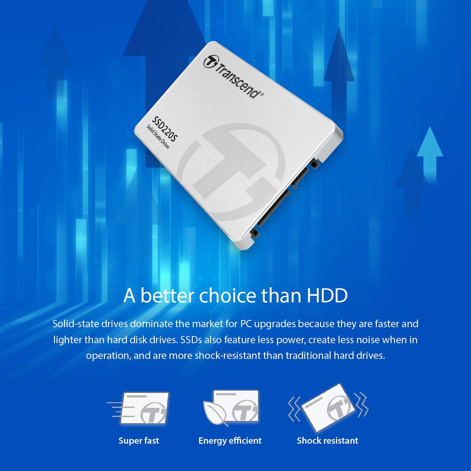 - Costruzione durevole: L'SSD220S è costruito per durare e presenta un design robusto che resiste a urti e vibrazioni, gradiscendo che i tuoi dati rimangano al solido anche durante l'uso mobile