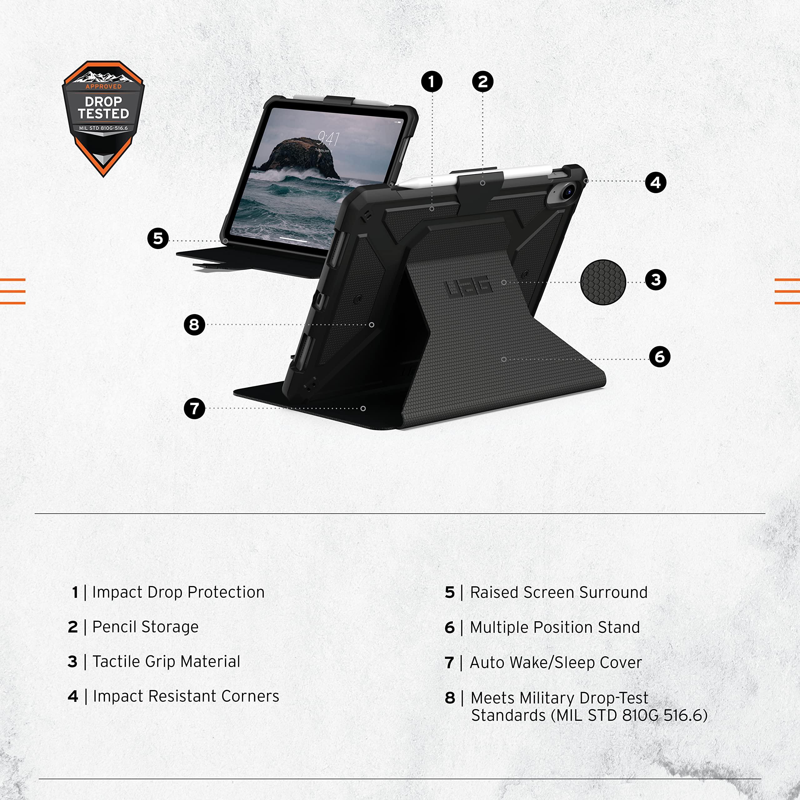 Urban Armor Gear Metropolis Custodia protettiva Apple iPad 10.9'' (10a generazione 2022) Cover [Apple Pencil Supporto, Resistente alle cadute, Funzione Wake/Sleep, "FrogSkin" Materiale] nero