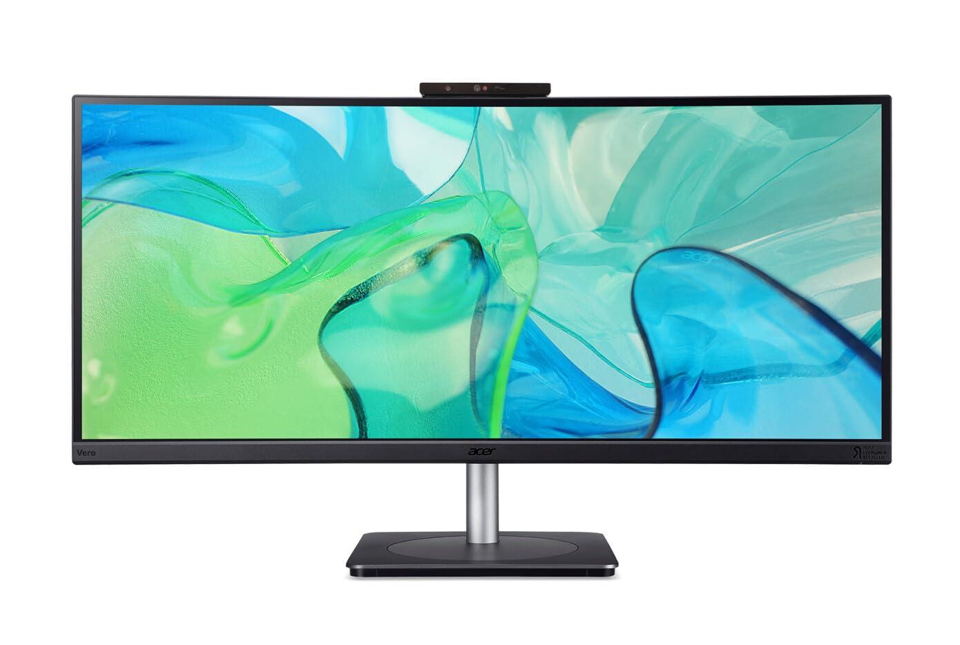 Acer Vero CB3: la sostenibilità unisce la tecnologia di fascia alta Acer Vero CB3 combina prestazioni eccezionali con un design ecologico e garantisce un'esperienza multimediale e di lavoro di prima classe. Con una generosa diagonale dello schermo da 34 pollici, una risoluzione UWQHD nitida e caratteristiche moderne come una webcam FHD-IR integrata con riconoscimento facciale Windows Hello e una potente soluzione di docking USB-C con 140 W di potenza di carica, questo monitor è perfetto per applicazioni professionali e videoconferenze. Dati tecnici a colpo d'occhio: diagonale dello schermo: 86,4 cm (34,0 pollici). As)Risoluzione: 3 440 × 1440 (UWQHD)Tempo di risposta: 4 ms (GTG)Luminosità: 300 cd/m²Webcam: videocamera FHD-IR regolabile con array microfoniCaratteristiche speciali: riconoscimento facciale Windows Hello, dock di tipo C con alimentazione da 140 W, opzioni di regolazione ergonomicaMassima connettività con dock USB-C e ricarica 14440 0 W La porta USB Type-C integrato consente una soluzione di docking con una potenza di ricarica di 140 W, in modo che computer portatili, tablet e altri dispositivi possano connettersi con un unico cavo e ricevere alimentazione contemporaneamente. Questa tecnologia riduce l'ingombro dei cavi e garantisce un posto di lavoro ordinato ed efficiente. Oltre all'alimentazione, USB-C trasmette anche segnali audio e immagini, in modo che i dispositivi esterni possano connettersi senza problemi. Eccellente qualità dell'immagine per lavorare e divertirsiLo schermo UWQHD da 34 pollici con una risoluzione di 3440 × 1440 pixel offre immagini nitide e colori vivaci. Grazie al rapporto ultralargo, il monitor è ideale per il multitasking contemporaneamente, l'editing di video o la riproduzione coinvolgente. Grazie a una luminosità di 300 cd/m² e un rapido tempo di risposta di 4 ms, il display offre una visualizzazione chiara senza fastidiosi ritardi, perfetto...