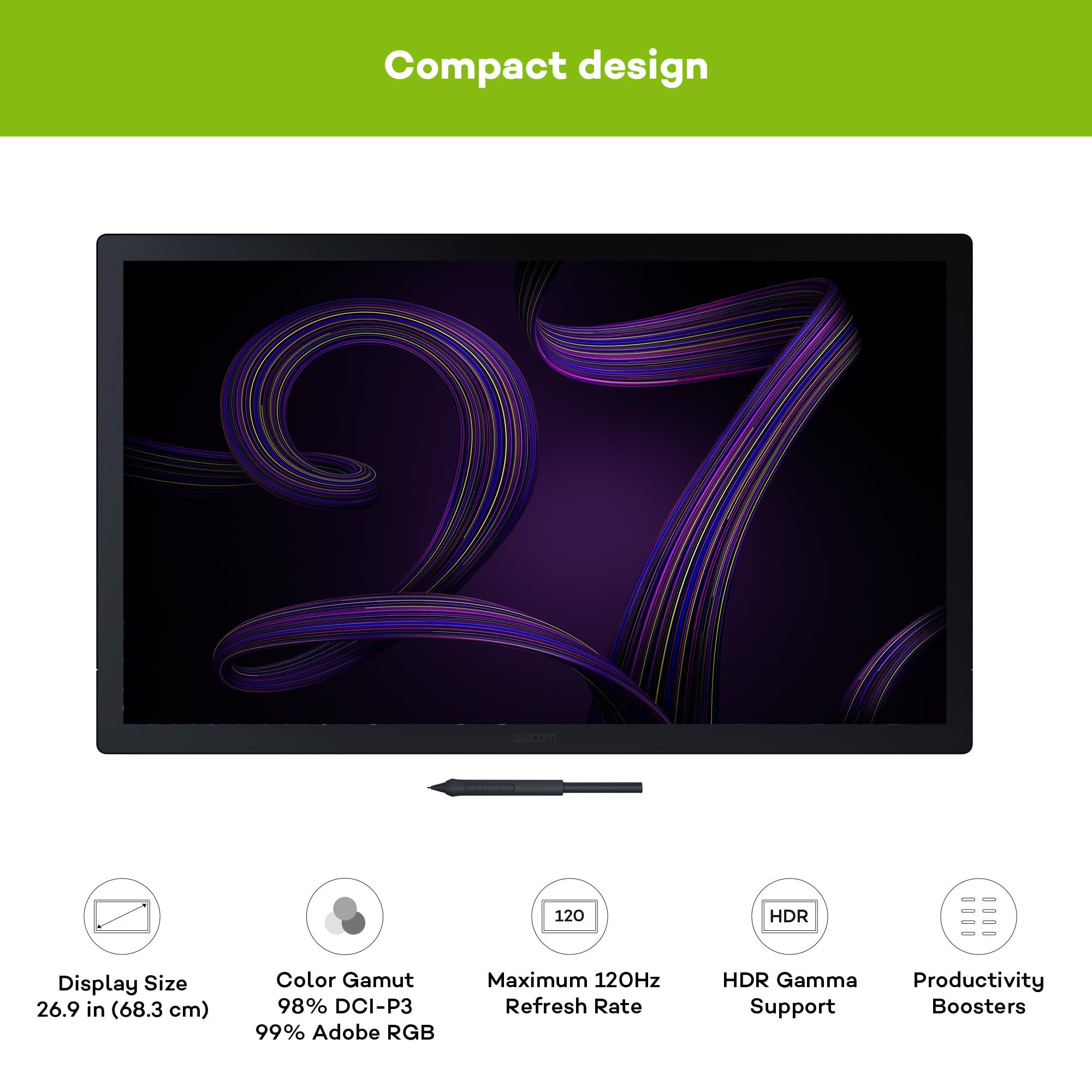 Wacom Cintiq Pro 27 - Tavoletta grafica con schermo, senza supporto (risoluzione 4K, display 26,9 pollici, supporto Gamma HDR, Pantone Validated, 99% Adobe RGB, Wacom Pro Pen 3, multi-touch)