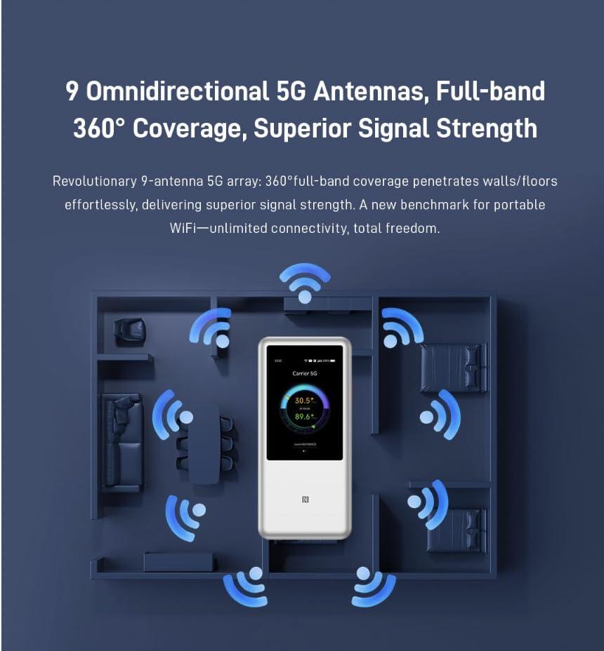 - TECNOLOGIA WIFI 7: hotspot mobile avanzato 2025 con tecnologia WiFi 7 e chipset Qualcomm SDX72 per una connettività Internet ultra veloce, affidabile e senza soluzione di continuità con copertura globale 5G NR e LTE, offrendo download più veloci, latenza inferiore e roaming globale senza interruzioni