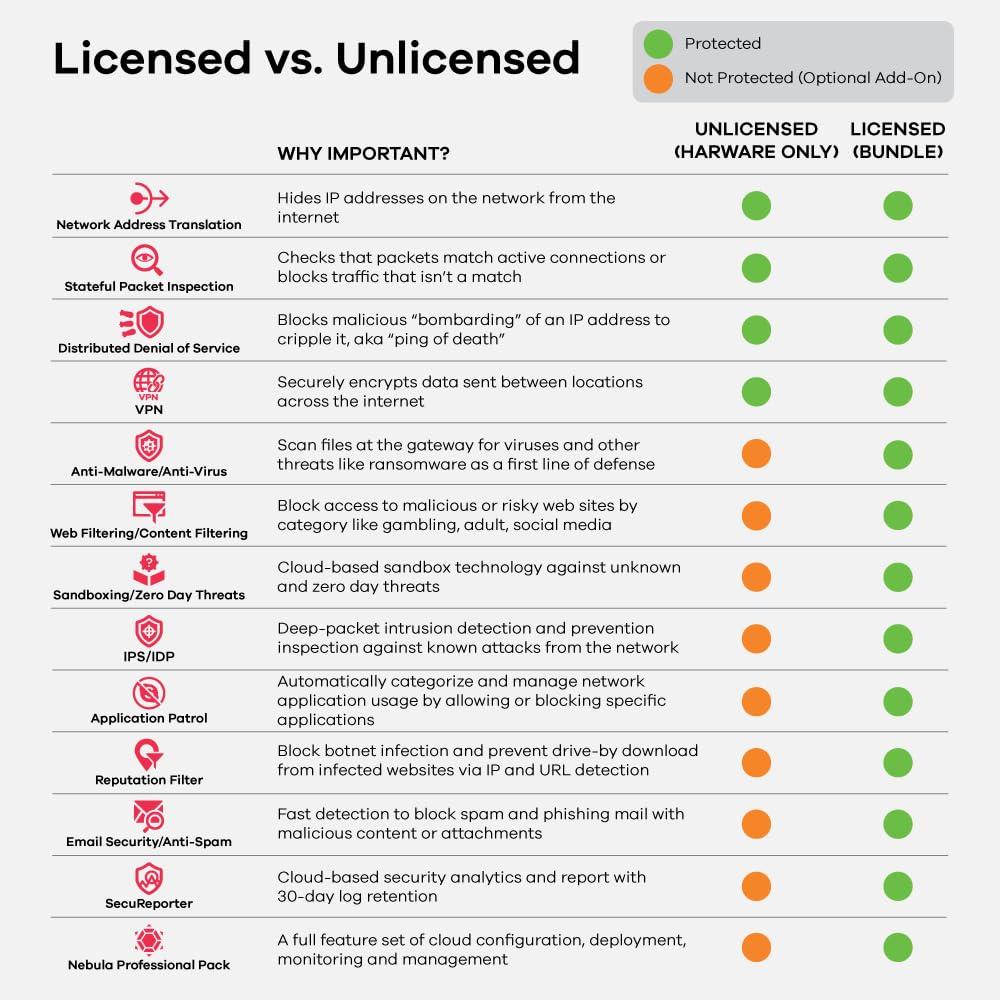 - Sicurezza potenziata dall'intelligenza artificiale, UTM, VPN support