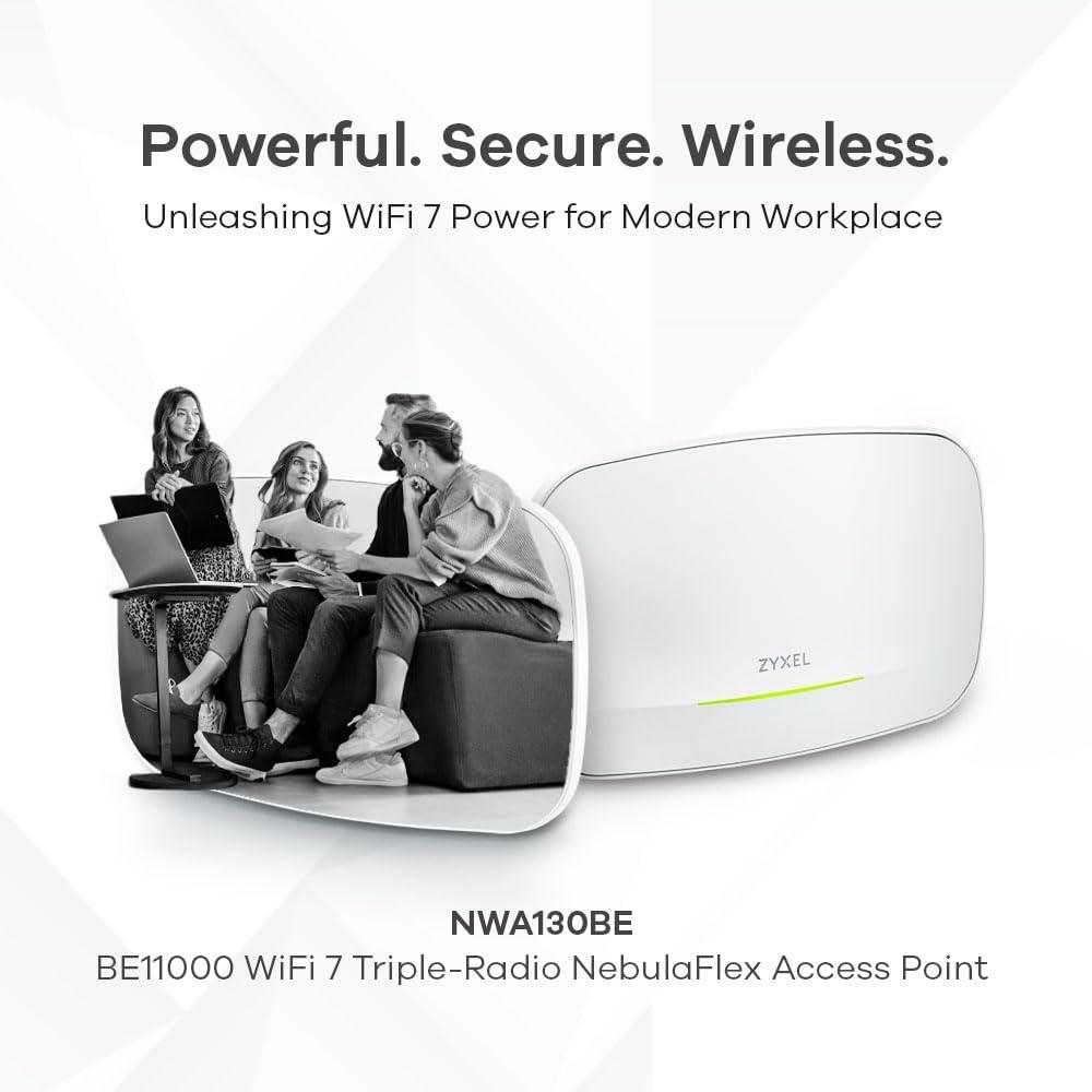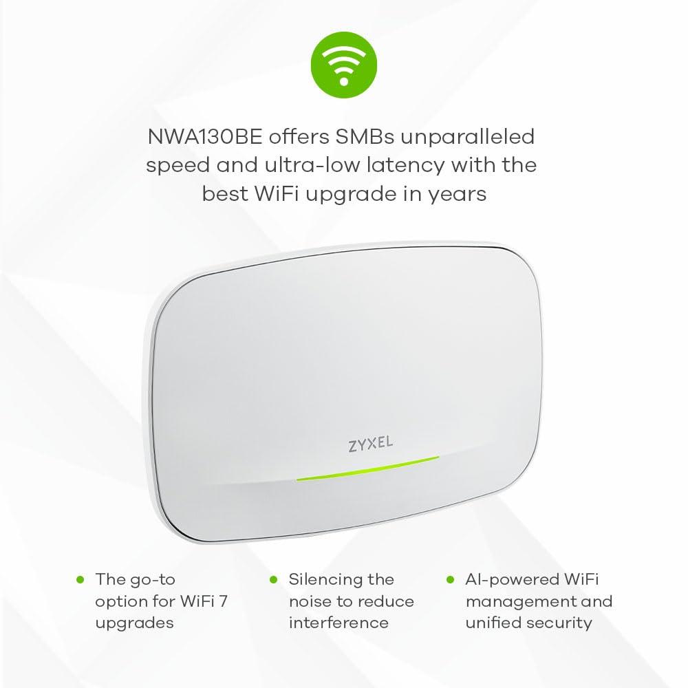 Zyxel WiFi 7 BE11000 Access Point PoE | 2 Porte Ethernet 2.5Gb | PoE+ | Triple Radio Livello Azendiale | Mesh | Gestione Cloud, App o Standalone | Alimentatore USB C (Non Incluso) [NWA130BE]
