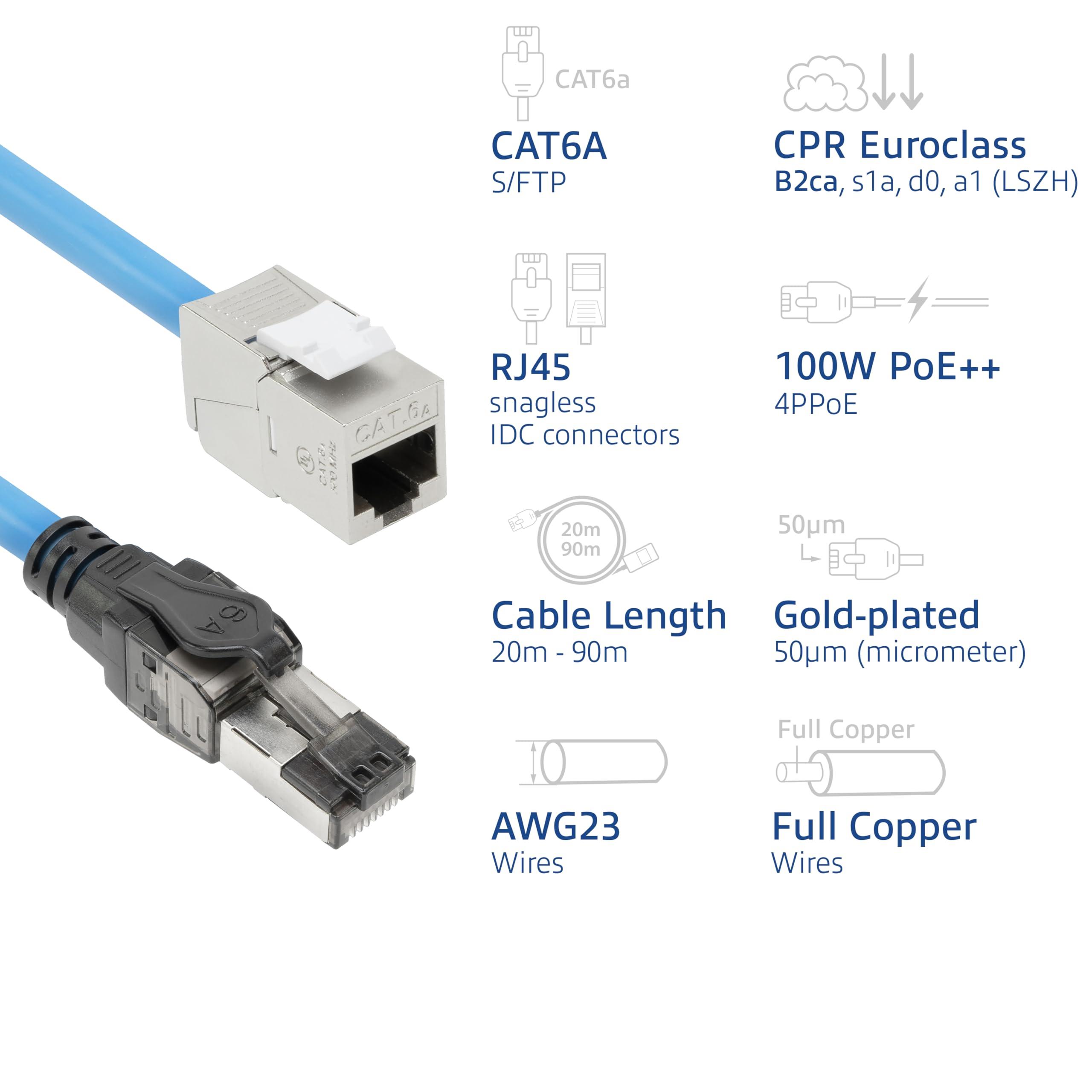 - Prestazioni: cavo di installazione CAT6A S/FTP con fili in rame da 23 AWG e contatti RJ45 placcati in oro 50µ per connessioni di rete affidabili
