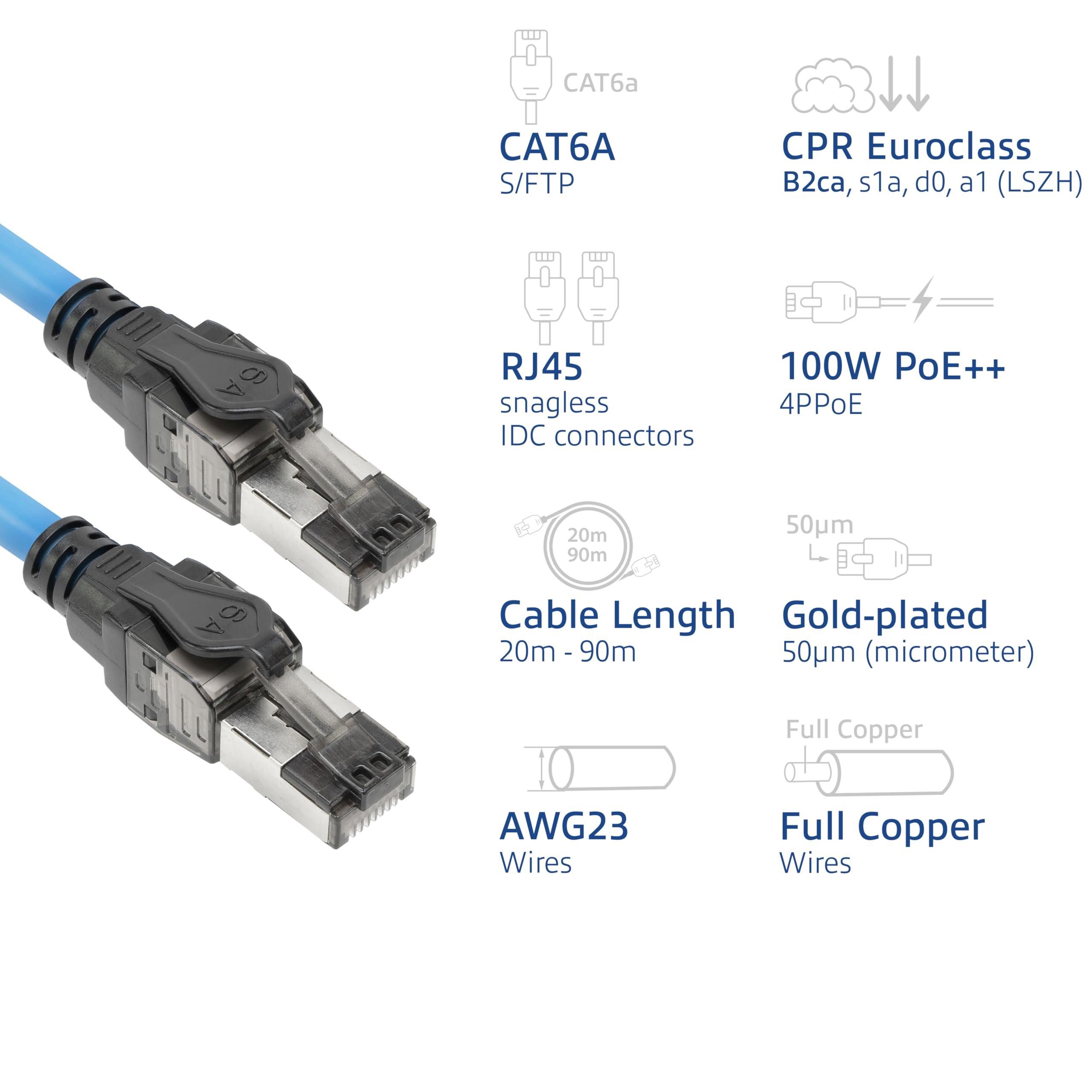 ACT Cavo di installazione CAT6A S/FTP, 80 m, preconfezionato, supporto 4PPoE 100 W, 23 AWG, classificazione B2ca, spina RJ45, per ambienti ad alto rischio, maschio a maschio - FB0080
