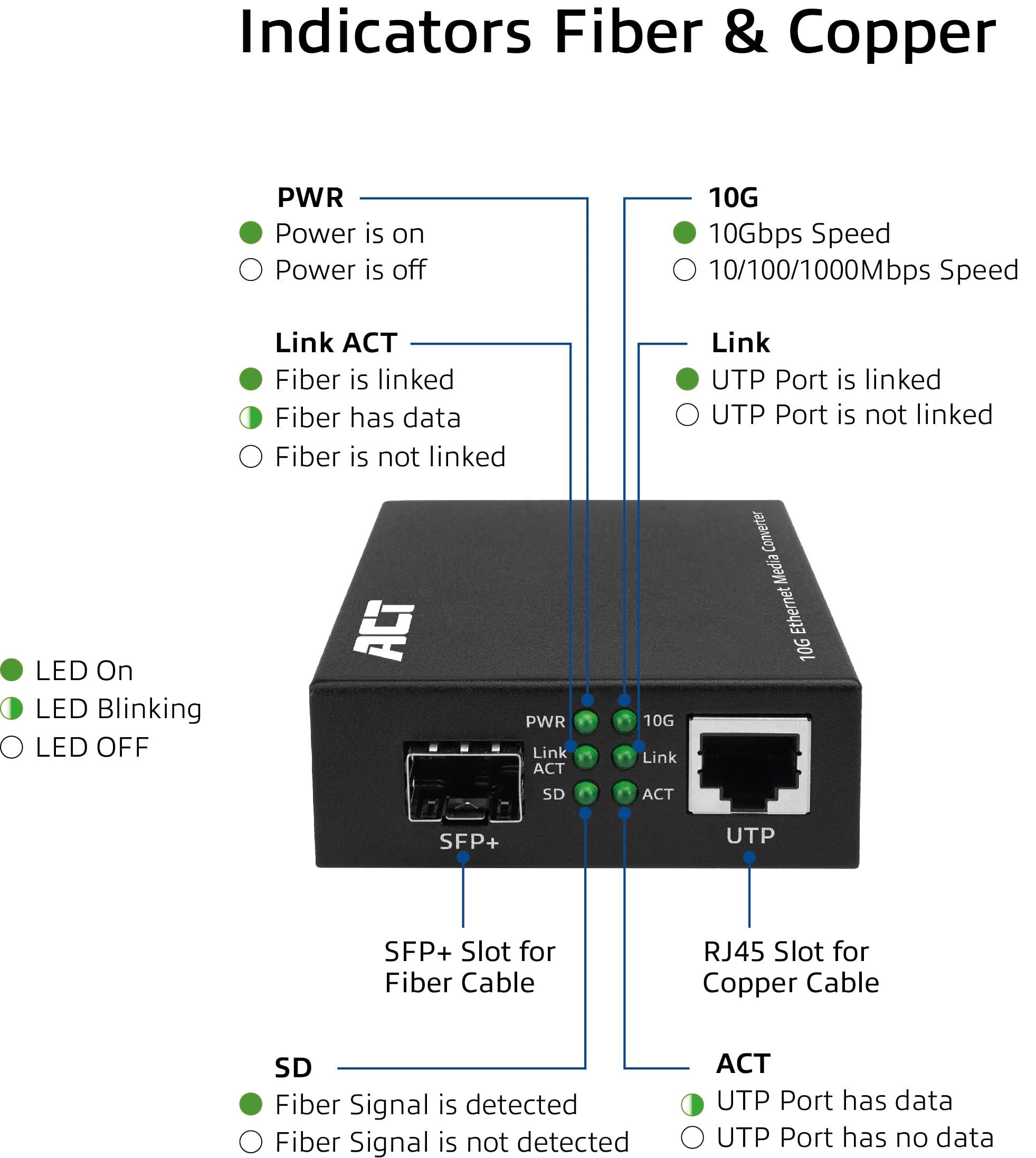 ACT Convertitore multimediale Ethernet in fibra di vetro, conforme allo standard 802.3ab, Multi Mode, Single Mode SFP+ – AC4455
