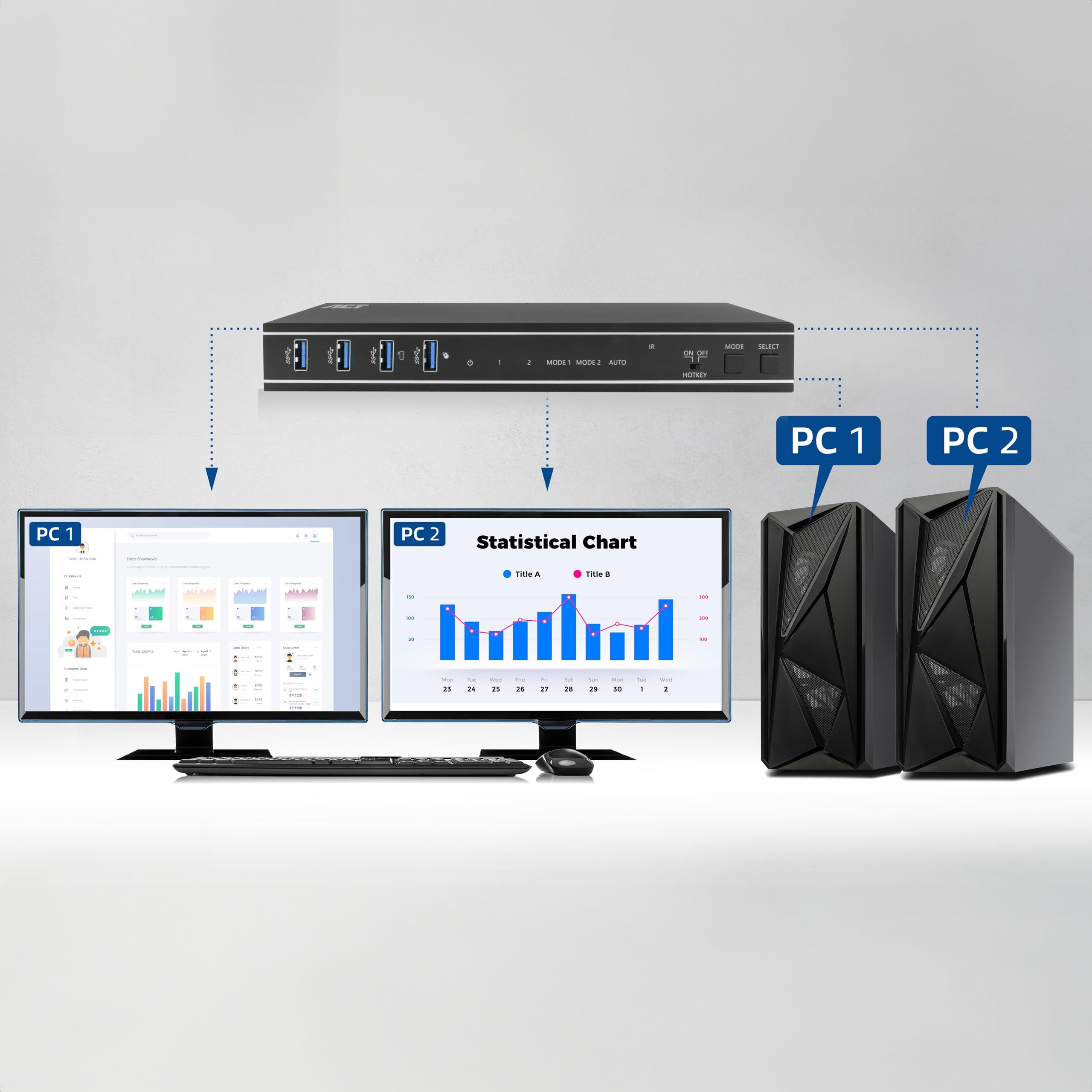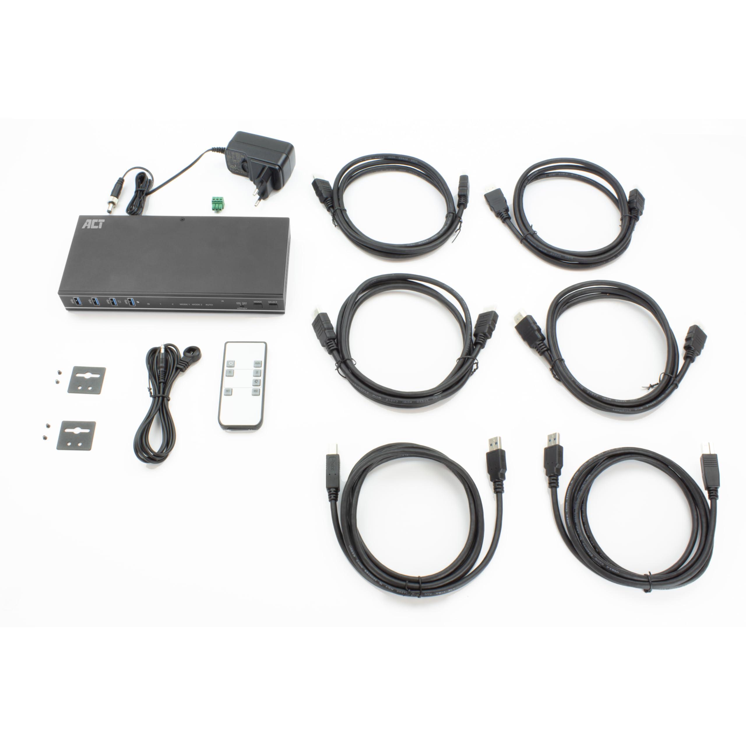 ACT KVM Switch 2 PC 2 monitor, 4K@60Hz, interruttore HDMI, 4 porte USB 3.0, HDCP 2.3, con cavo HDMI e USB, telecomando, staffa di montaggio Ufficio - AC7914