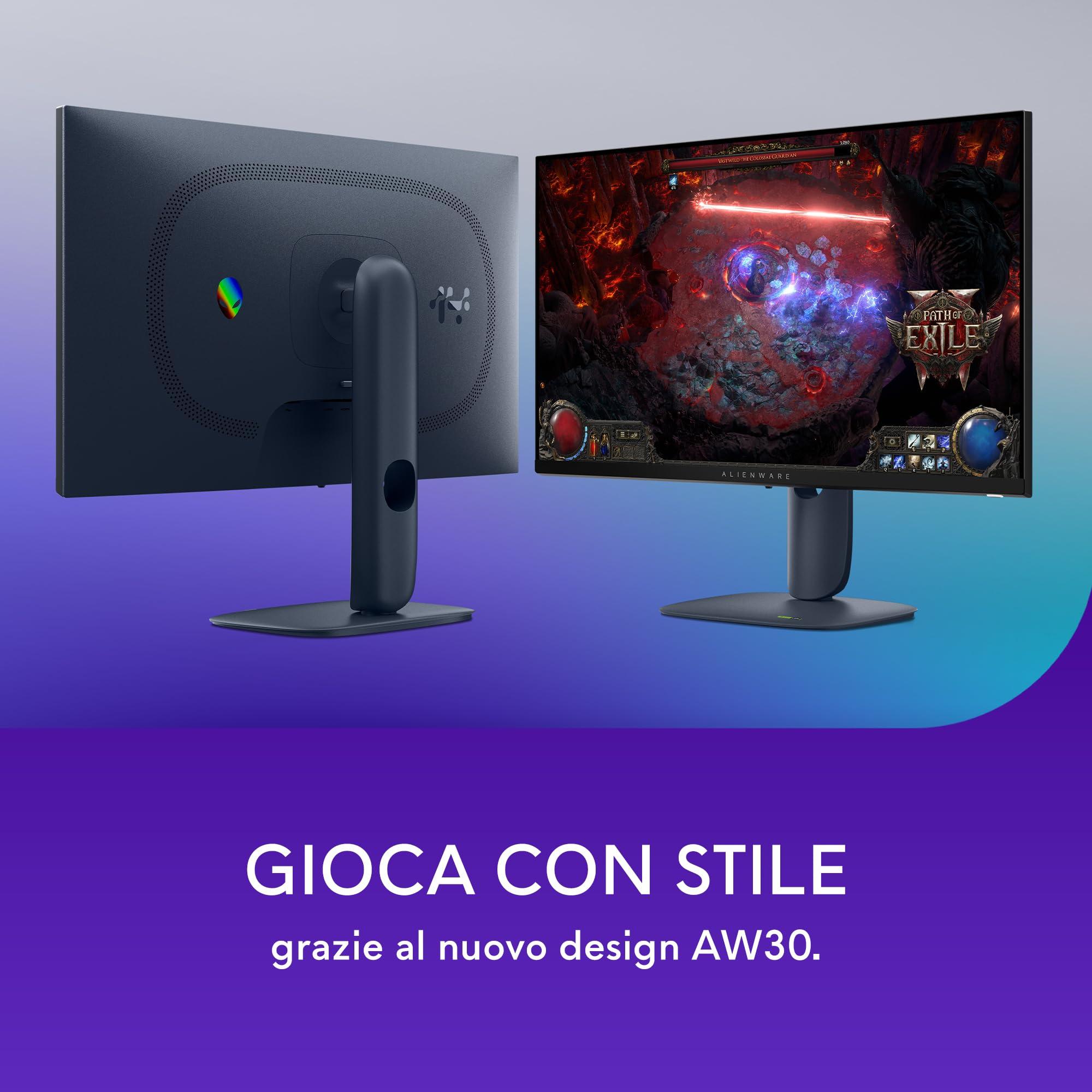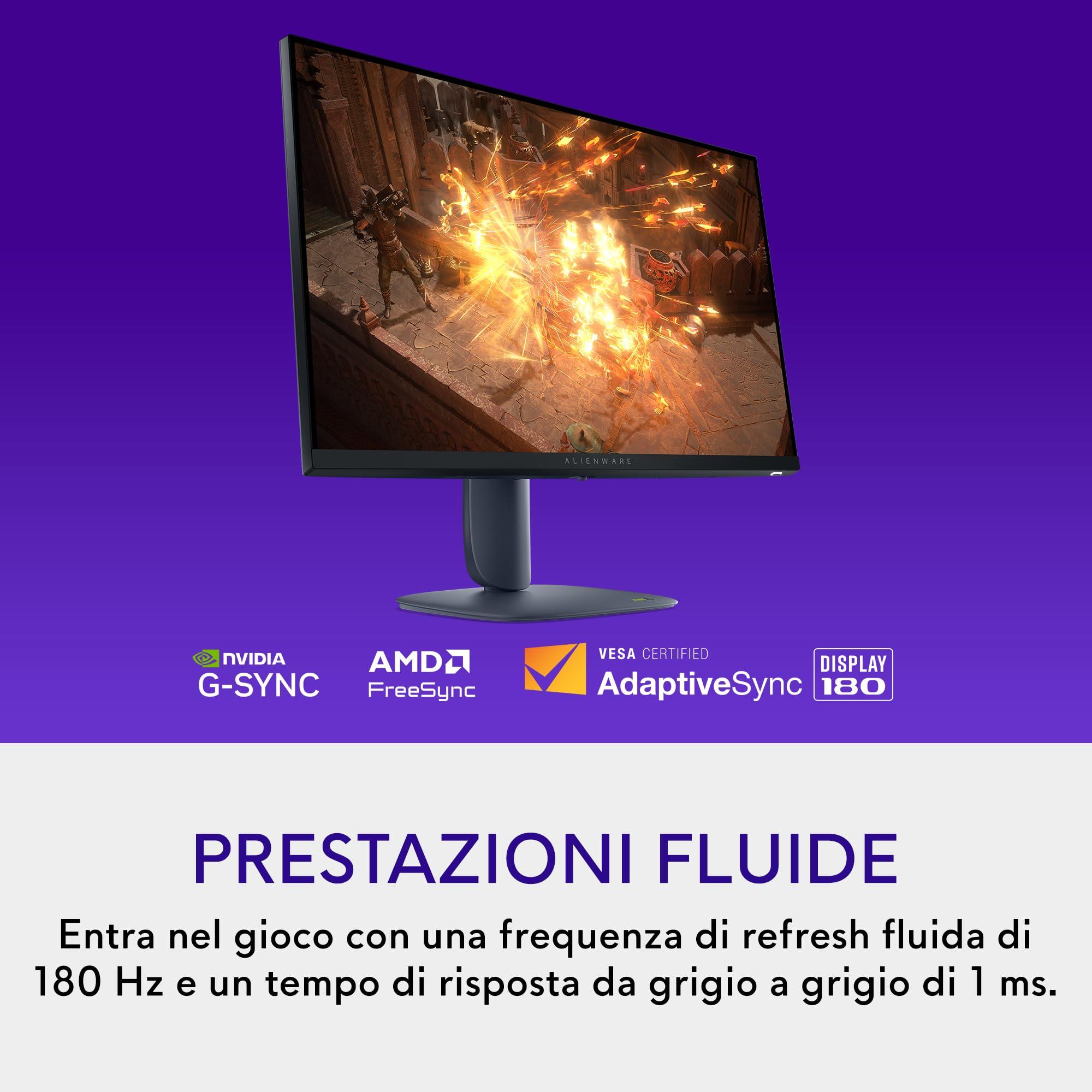 Alienware 27 Monitor Gaming - AW2725DM, QHD (2560x1440), 180Hz, Fast IPS, 1ms, NVIDIA G-SYNC Compatible, AMD FreeSync, 95% DCI-P3, HDR400, DisplayPort, 2 HDMI, 3 USB, 3 Anni di Garanzia