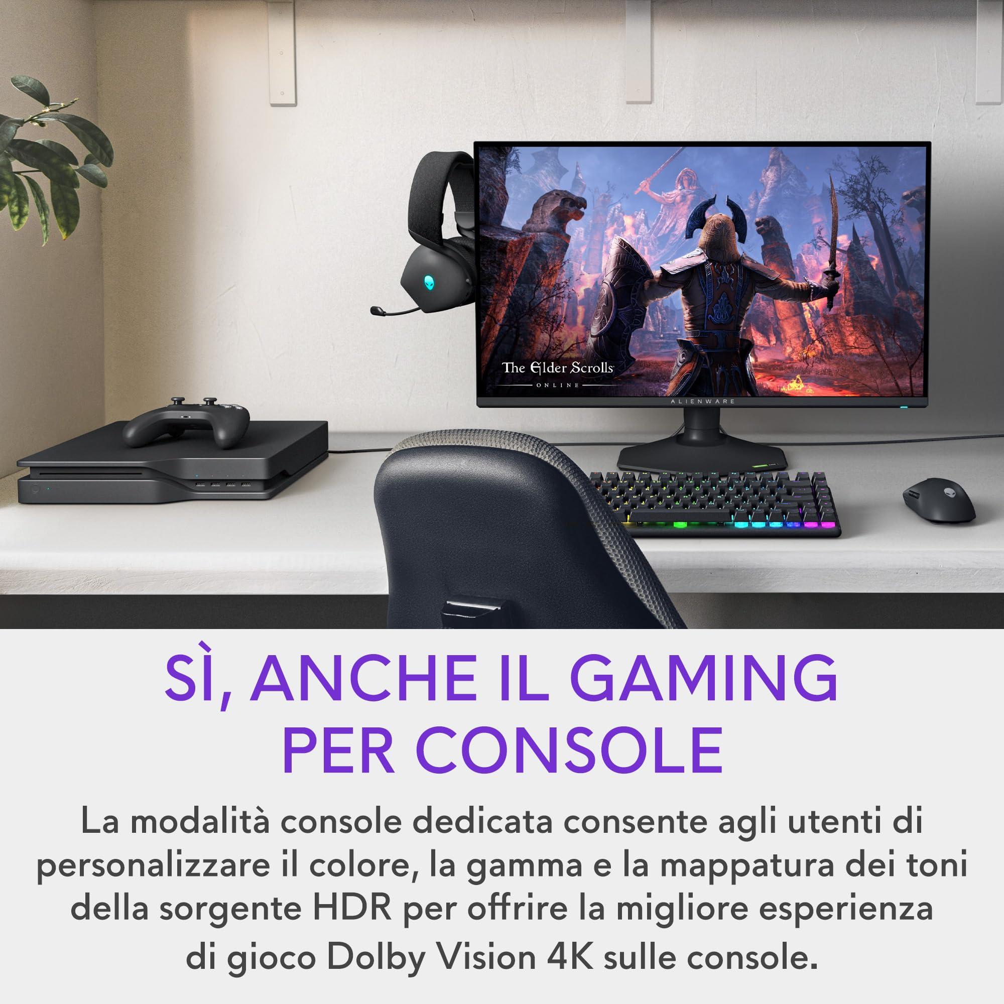 - IMMERGITI IN MONDI VISIVI STRAORDINARI CON HDR600 E DOLBY VISION: I giochi beneficiano di un contrasto migliorato e di una luminosità fino a 600 nit, con il supporto HDR600 e Dolby Vision che garantisce dettagli ultra-realistici sia nelle scene scure che luminose.
