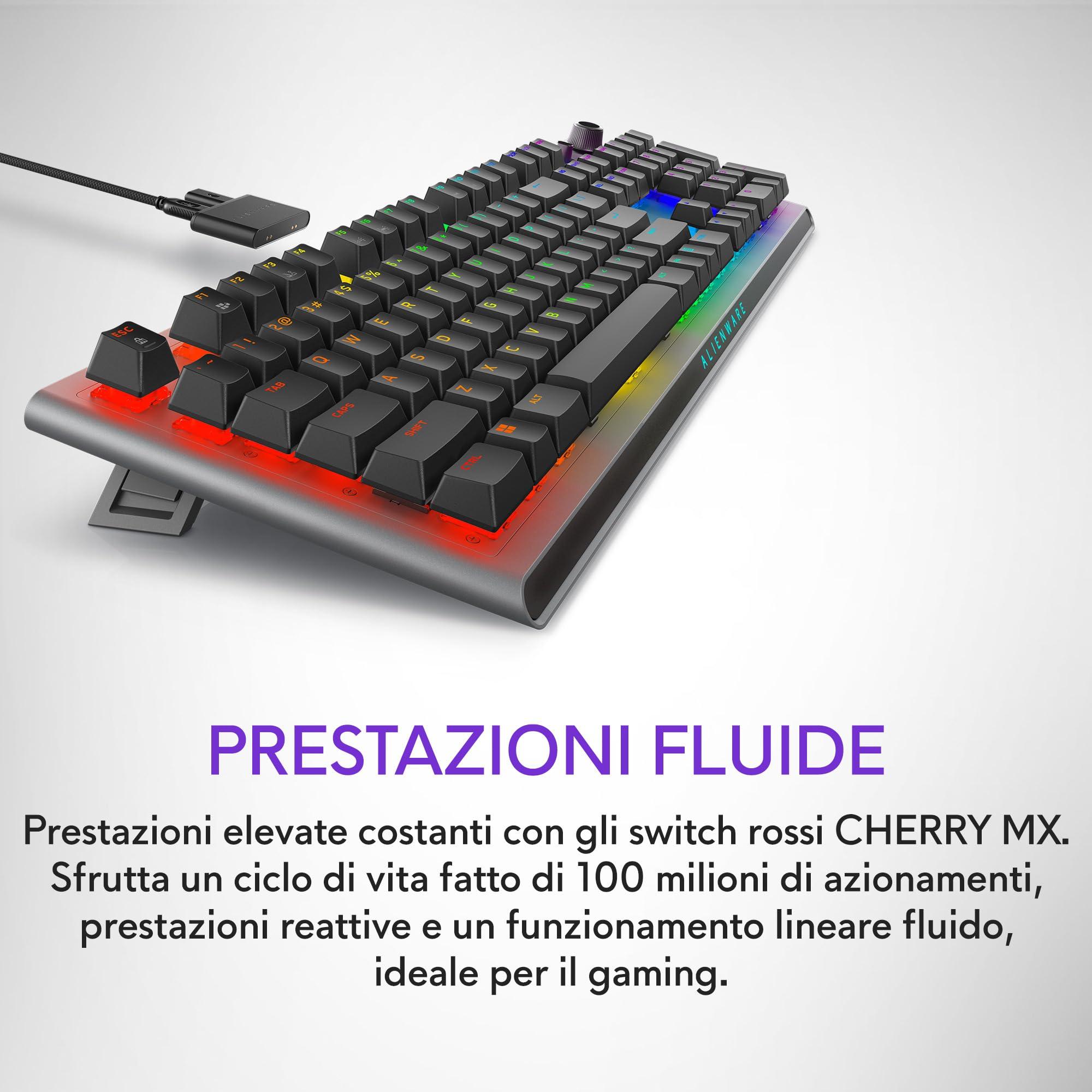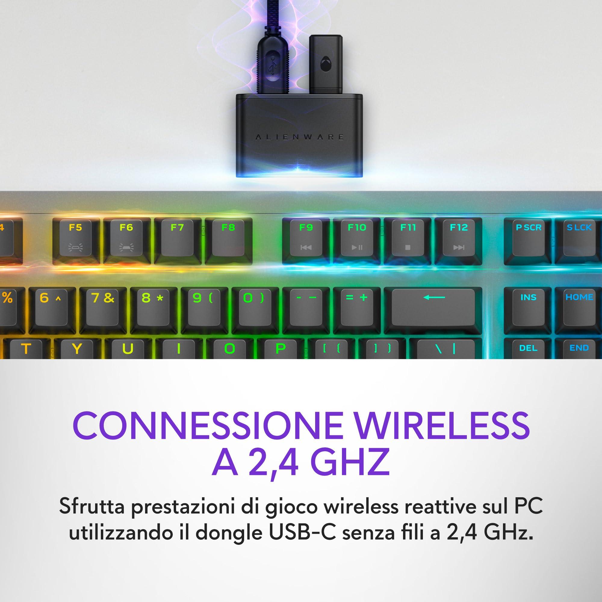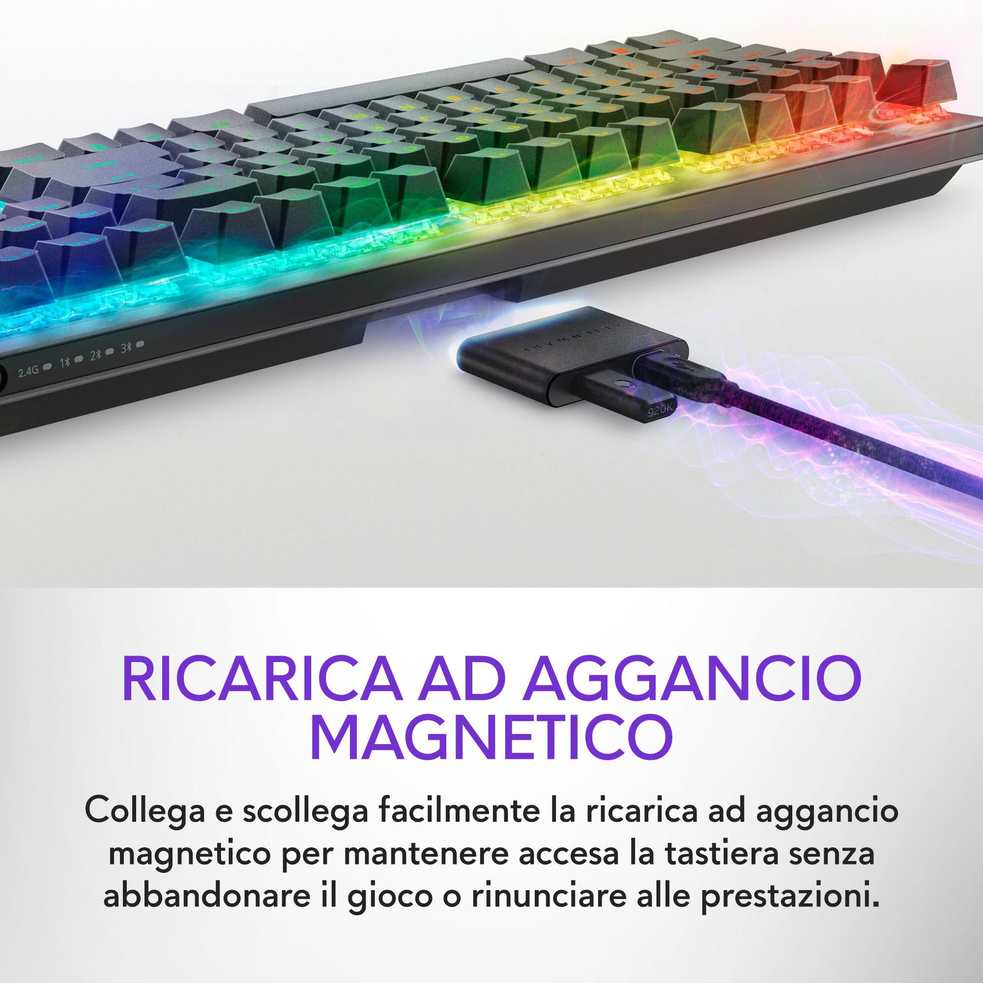 Alienware AW920K Tastiera Tri-Mode Wireless Gaming – Connettività Tri-Mode, Retroilluminazione AlienFX RGB, Switch CHERRY MX Red, Ricarica Magnetica, Qwerty Dark Side of the Moon