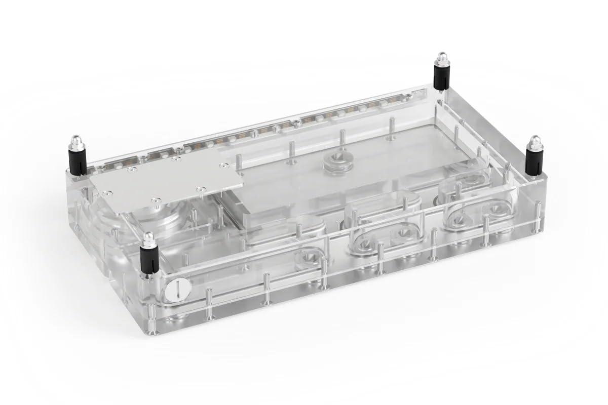 La piastra Alphacool Core Distro con pompa integrata è un must assoluto per tutti i sistemi di raffreddamento ad acqua personalizzati! Con il suo design centrale, non è solo un vero e proprio colpo d'occhio, ma anche un capolavoro funzionale che semplifica la costruzione e la pianificazione di complessi anelli d'acqua e offre un'installazione semplice. La piastra Distro è realizzata in acrilico di alta qualità e dotata di connessioni in ottone cromato G1/4'. Questi sono stati incassati e volutamente non avvitati per ridurre al minimo il rischio di crepe e perdite aumentando la stabilità. I collegamenti sono costituiti da due parti, hanno un O-ring e si contrappongono quando montati in acrilico. Ciò non solo garantisce l'assoluta tenuta di ogni connettore, ma consente anche l'aspetto pulito e funzionale della serie Core Design di Alphacool. La disposizione delle connessioni è progettata non solo per ottimizzare il routing dei tubi, ma anche per fornire un aspetto attraente. Questo è completato dalla sua illuminazione aRGB integrata, che fornisce effetti visivi impressionanti. L'illuminazione può essere controllata tramite un header aRGB digitale sulla scheda madre o opzionalmente tramite il controller Alphacool Aurora Eiscontrol aRGB (articolo n. : 15360). Il kit di montaggio Alphacool Core Push è incluso nella fornitura, il che semplifica notevolmente l'installazione della piastra di distribuzione. I perni metallici sono fissati a un radiatore o al pannello del case del PC e le maniche femmina corrispondenti sono attaccate alla piastra di distribuzione in modo da doverle solo spingere sui perni. Questo sistema garantisce un montaggio sicuro della piastra di distribuzione e consente un facile smontaggio per manutenzione o estensioni. Una descrizione dettagliata si trova nelle istruzioni allegate.Dati tecniciDimensioni (L x P x A)280,00 x 145,00 x 42,00 mmDimensioni (L x P x A) con pompa 280,00 x 145,00 x 61,00 mmDimensioni (L x P x A) con montaggio a spinta280,00 x 144,00 mm 5,00 x 72,80 mmDimensioni (L x P x A) con pompa + montaggio a spinta280,00 x 145,00 x 8