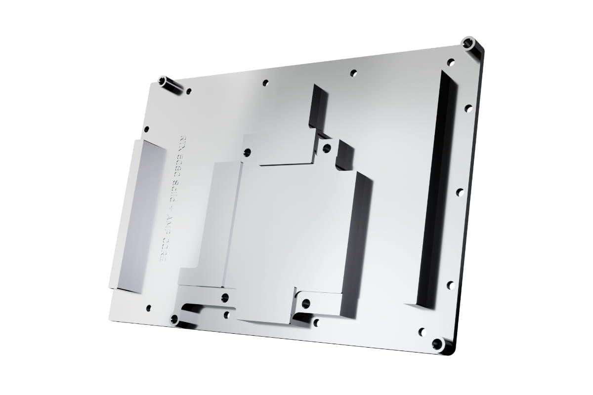 - La piastra posteriore in alluminio appositamente adattata copre l'intera parte posteriore del dispositivo di raffreddamento in rame, garantendo un aspetto chiaro e uniforme