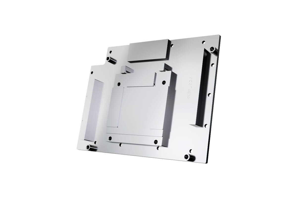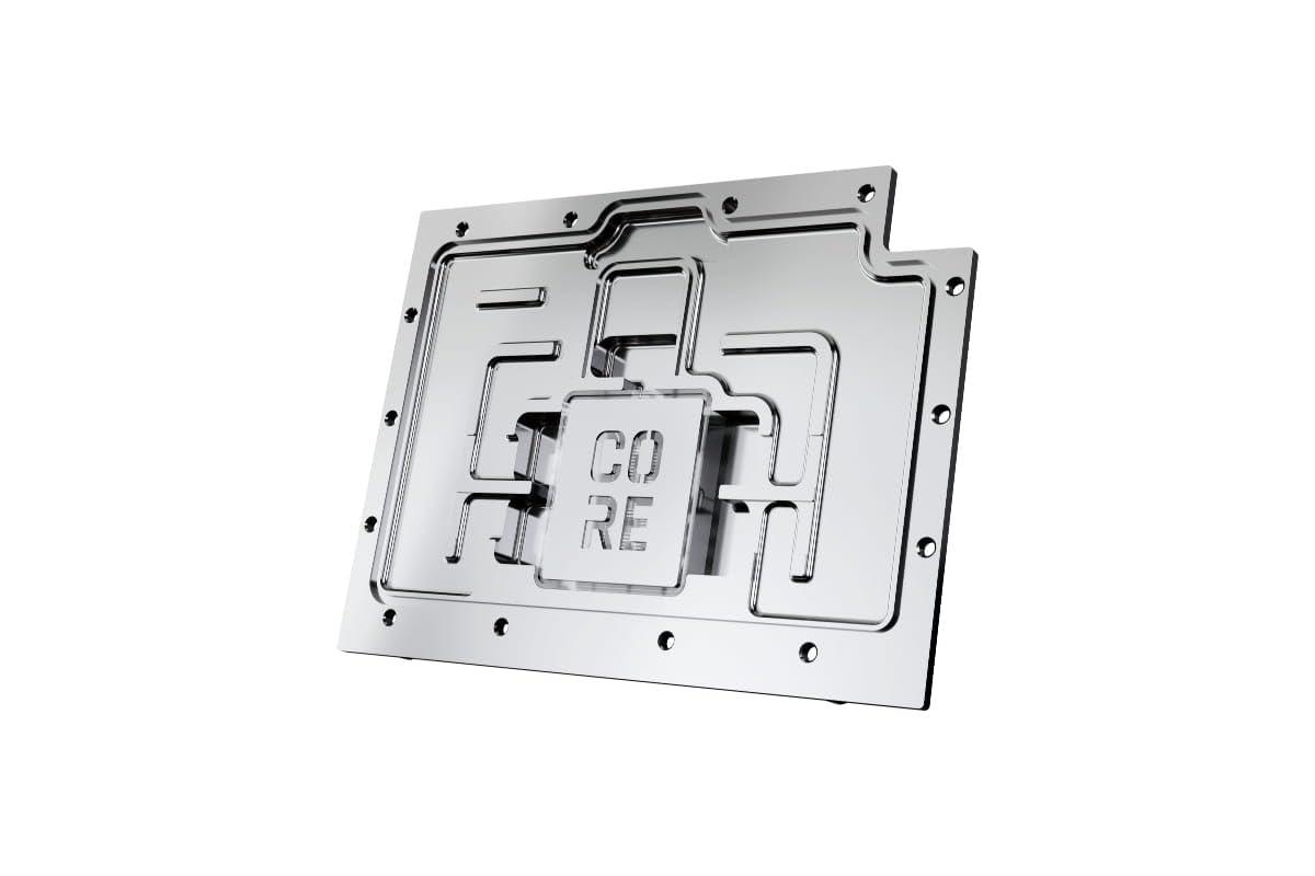 Al centro del refrigeratore è il refrigeratore in rame fresato da un unico pezzo, completato da un terminale di collegamento in ottone lavorato con precisione con una copertura in nylon. La cromatura rende il radiatore in rame più resistente e garantisce una superficie più liscia e luminosa rispetto alla tradizionale placcatura in nichel. Il design visivo del refrigeratore d'acqua GPU è stato solo leggermente modificato. Un punto culminante speciale è l'emblema Core appena aggiunto sopra la piastra del getto, che sottolinea l'affiliazione con la serie Core e ne migliora visivamente il design. La serie continua ad affidarsi a connettori in ottone di alta qualità, garantendo qualità e sicurezza ottimali. La piastra posteriore in alluminio appositamente adattata copre l'intera parte posteriore del radiatore in rame e garantisce un aspetto chiaro e uniforme. L'acrilico, in combinazione con l'illuminazione aRGB, consente un'illuminazione uniforme e impressionante dell'intero refrigeratore. Tecnicamente, il refrigeratore d'acqua GPU è stato completamente ridisegnato. Per ottimizzare le prestazioni di raffreddamento, sono stati ridefiniti e testati gli spazi tra il dispositivo di raffreddamento e i componenti PCB. Il flusso d'acqua è stato simulato utilizzando software all'avanguardia e verificato in test pratici. Questi test approfonditi hanno consentito miglioramenti alla base e all'ugello del radiatore per garantire le migliori prestazioni di raffreddamento possibili per la nuova generazione AMD Radeon RX. Compatibilità: - Asus Prime Radeon RX 9070 OC Edition 16GB GDDR6 - Asus TUF Gaming Radeon RX 9070 OC Edition 16GB GDDR6 - Asus Prime Radeon RX 9070 XT OC Edition 16GB GDDR6 - Asus TUF Gaming Radeon RX 9070 XT OC Edition 16GB GDDR6 Raffreddatore dati tecnici Dimensioni complete (L x P x A) 220,00 x 144,50 x 33,07 mm Materiale base radiatore rame cromato Materiale superiore del radiatore Materiale acrilico Terminale nylon Materiale filo di collegamento Ottone Temperatura massima di lavoro 60 °C Pressione testata 0,8 bar Connessioni 4 x G1/4" Spessore della base del radiatore 3,25 mm alette di raffreddamento spesse 0,4 mm Distanza tra le alette di raffreddamento Illuminazione da 0,4 mm. LED aRGB digitali Collegamento di alimentazione aRGB LED digitali a 3 pin JST Tensione digitale aRGB LED 5V Numero di LED aRGB digitali 10 Colore trasparente