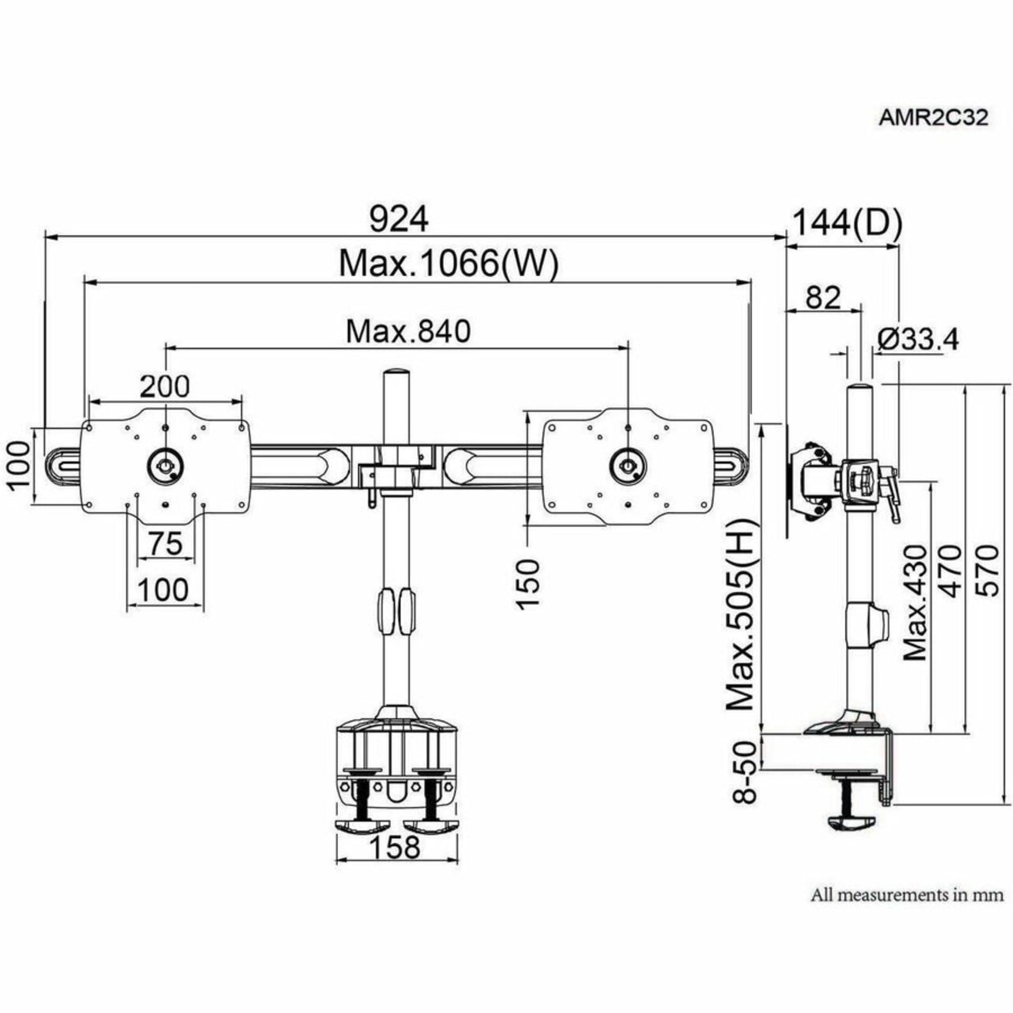Amer Networks AMR2C32 32" Morsa Nero supporto da tavolo per Tv a schermo piatto