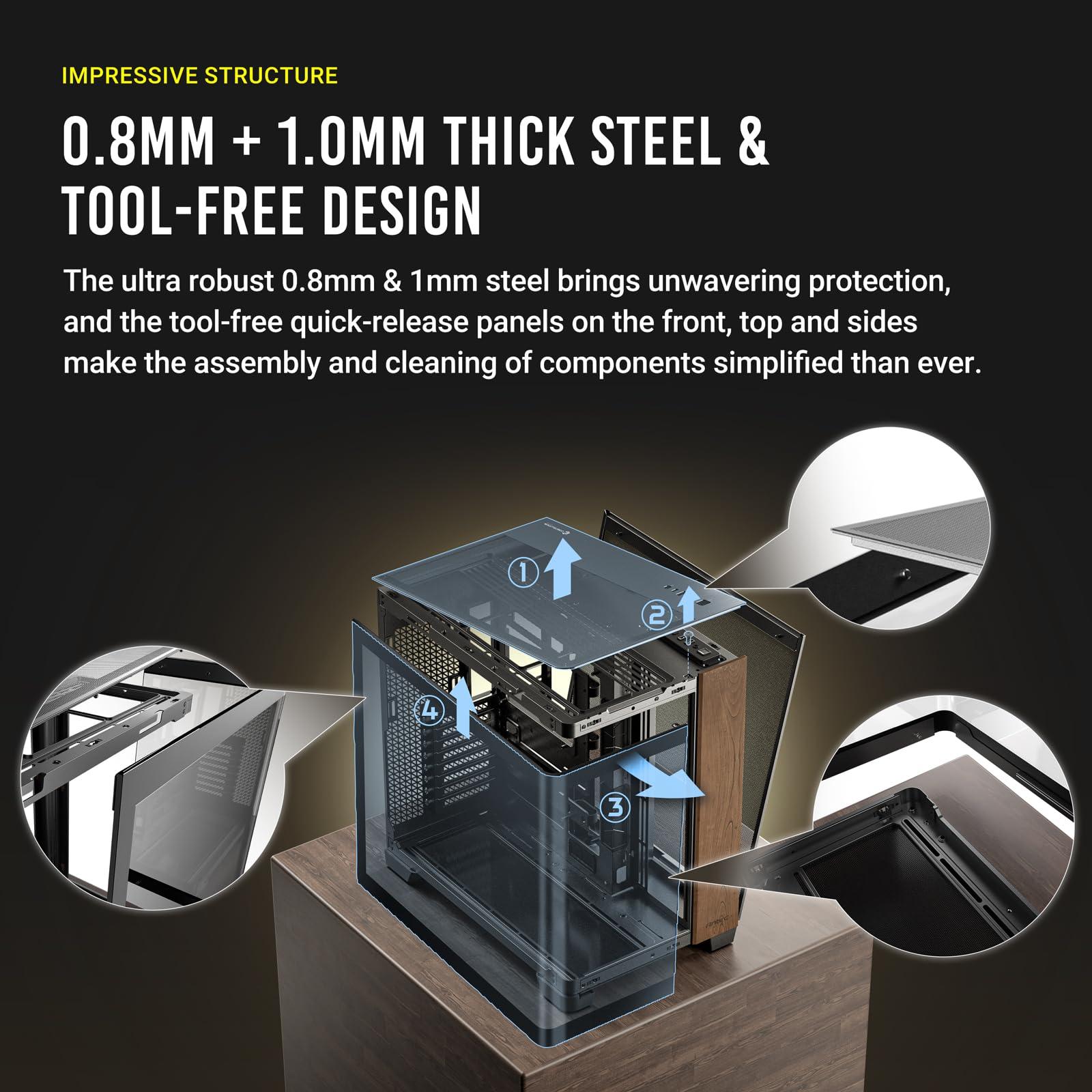 - Pannello TG super grandangolare con legno esotico, design a doppia camera, compatibile con RTX 40
