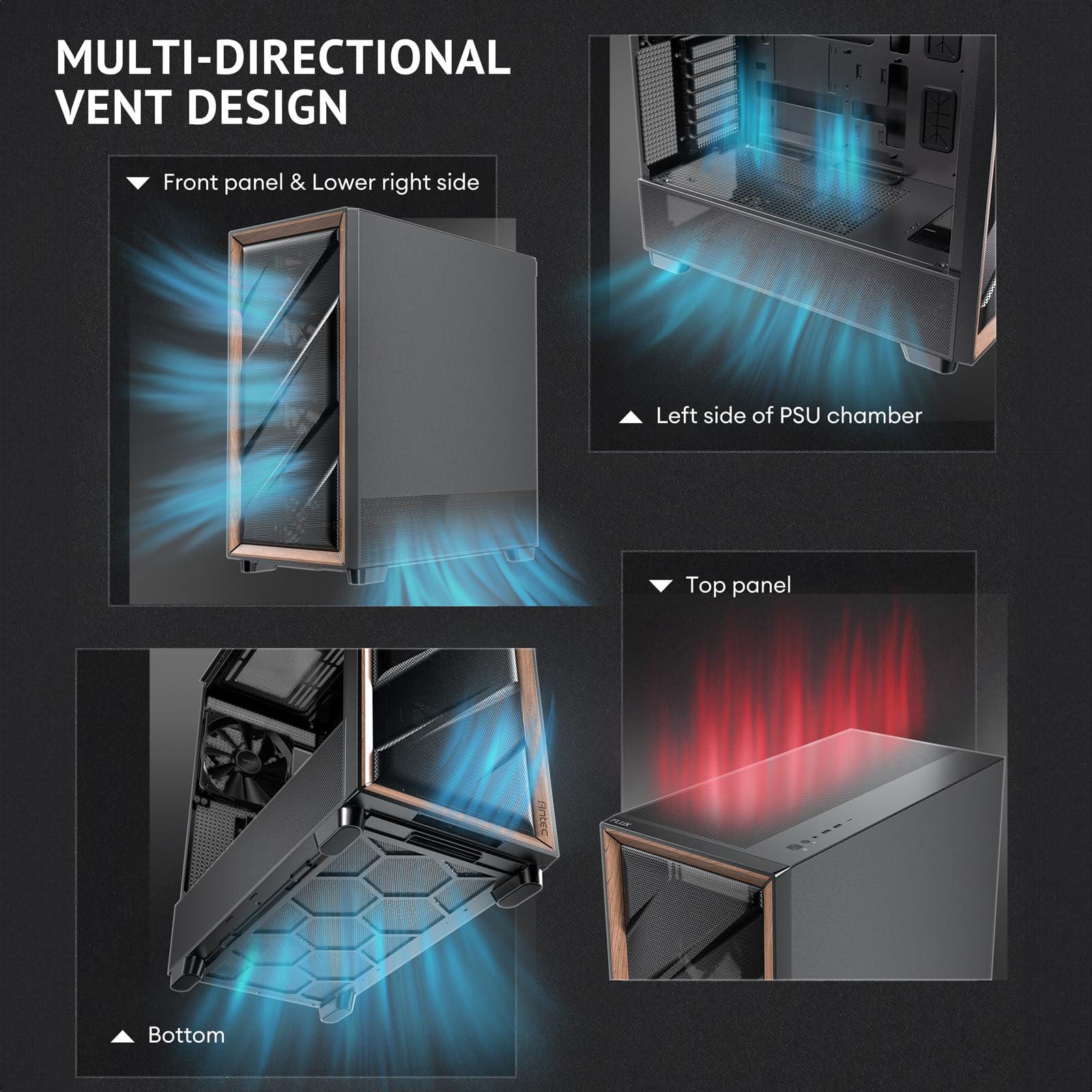 - Il design multidirezionale crea un canale di flusso d'aria Antec Flux dedicato.