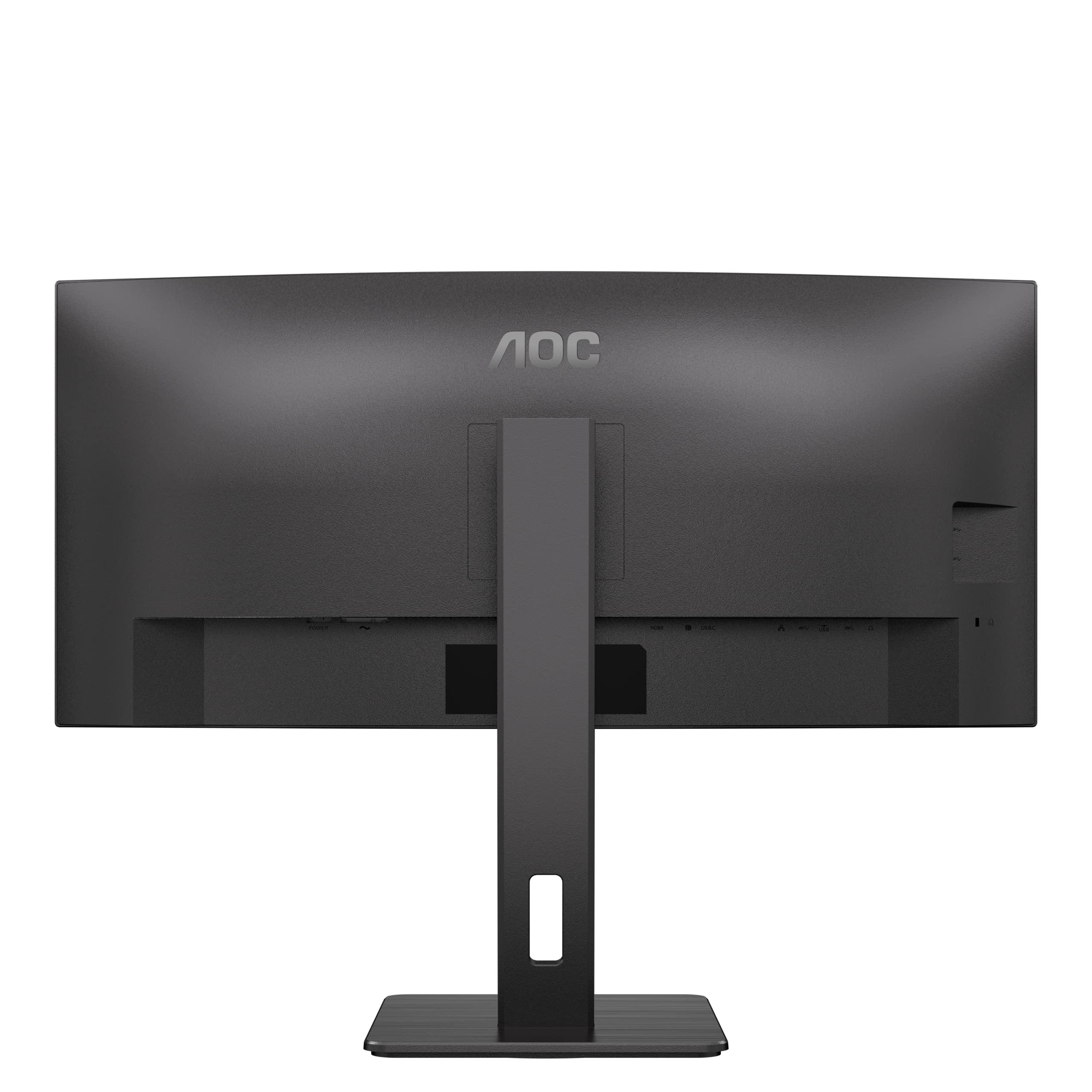 AOC CU34P3CV - Monitor curvo WQHD da 34 pollici, regolabile in altezza, altoparlante (3440x1440, 100 Hz, HDMI, DisplayPort, USB-C (65W PD), RJ45, hub USB) nero