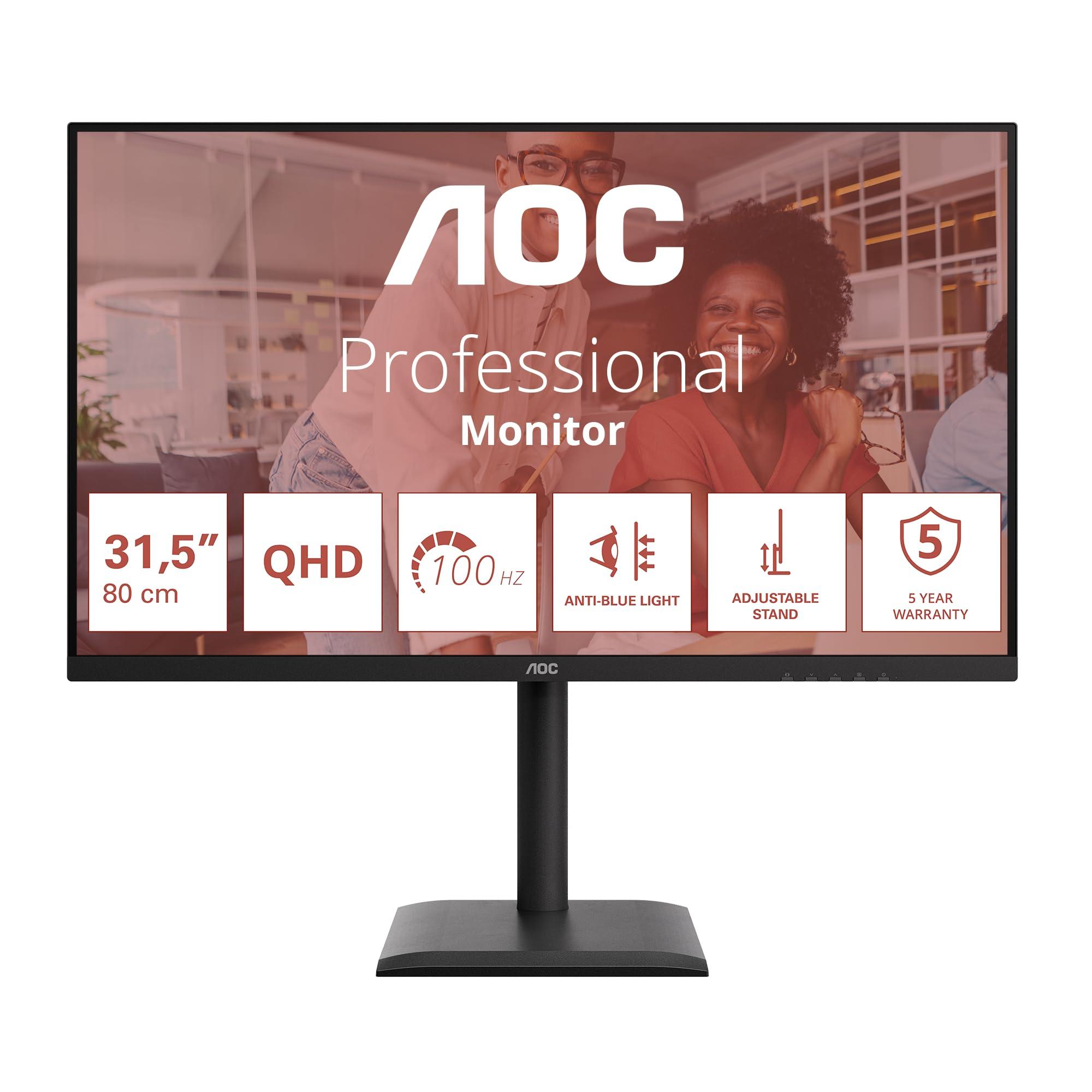 AOC Monitor Q32E4U da 31,5 pollici WQHD 100 Hz, pannello IPS, GtG 4 ms, Adaptive Sync, modalità HDR, regolazione altezza, altoparlanti, (2560x1440 HDMI 2x DP 1.4 Hub USB 1.4) Nero