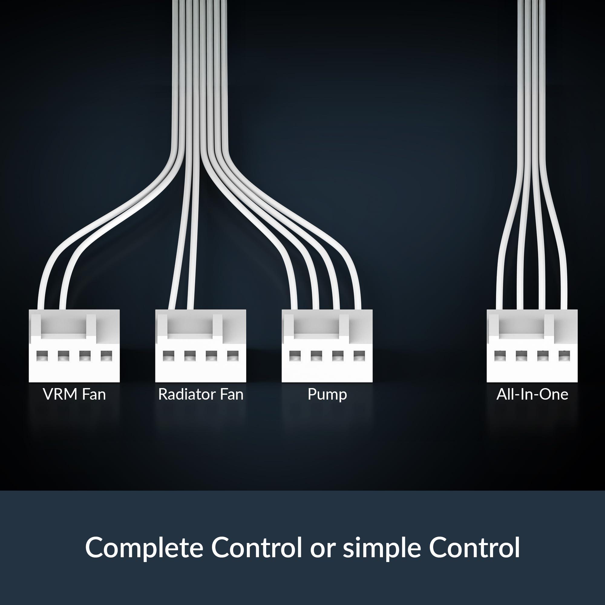 - CABLE MANAGEMENT INTEGRATO: i cavi PWM delle ventole del radiatore sono integrati nella guaina dei tubi, in modo da collegare alla scheda madre un solo cavo visibile.