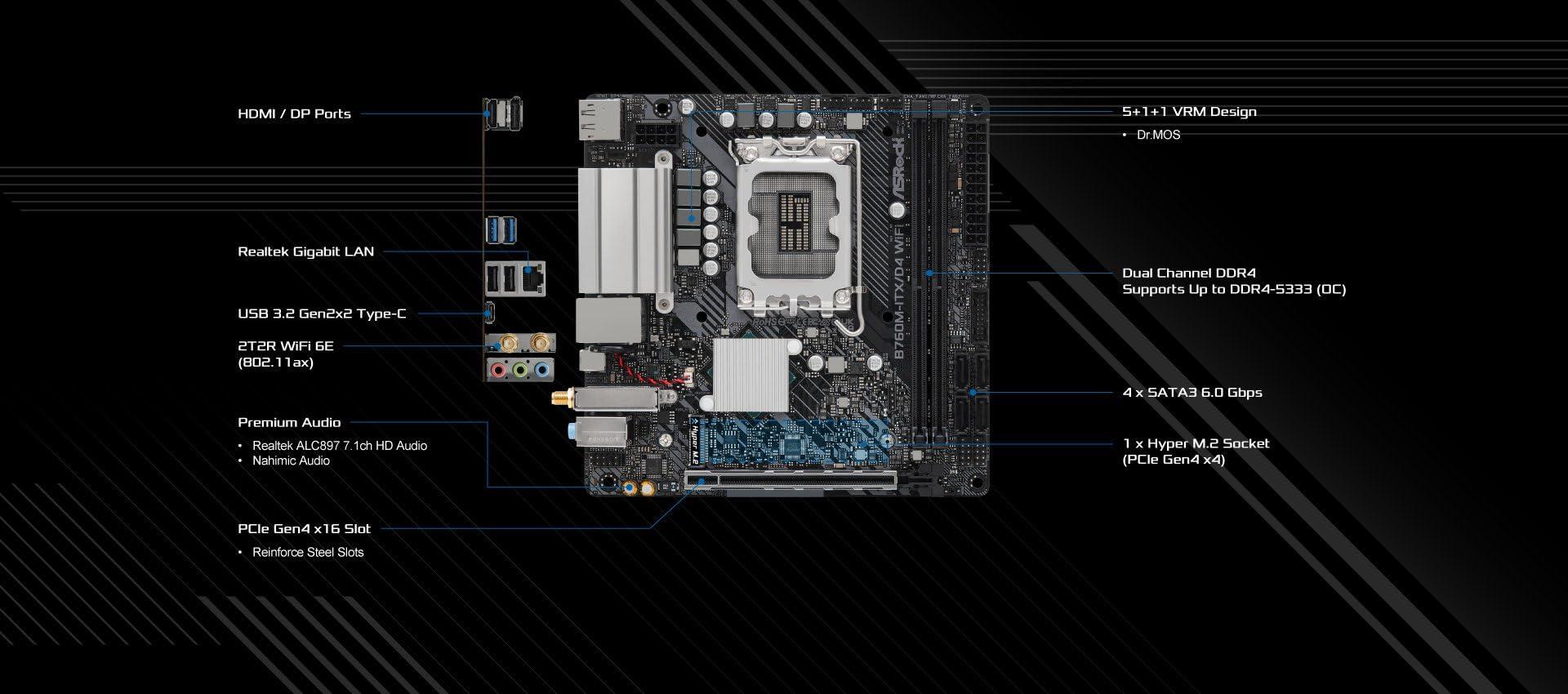 Asrock B760M-ITX/D4 WiFi Intel B75 LGA 1700 mini ITX