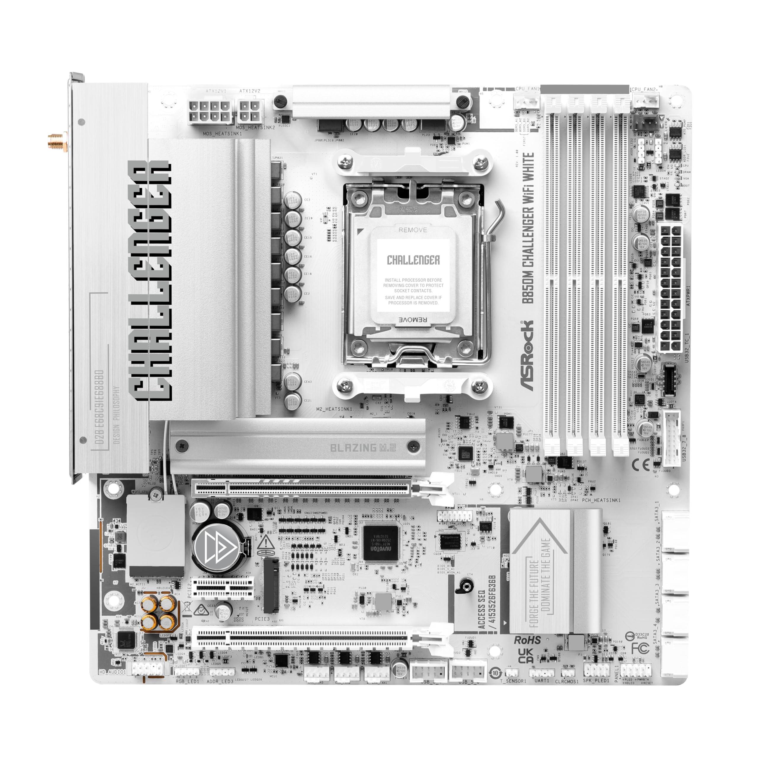ASRock B850M Challenger WiFi White Socket AM5 Micro-ATX Scheda madre, compatibile con AMD Ryzen Serie 9000/8000/7000, B850, DDR5 8000+(OC), PCIe 5.0, WiFi 7, LAN 2.5G, porte Lightning da gioco