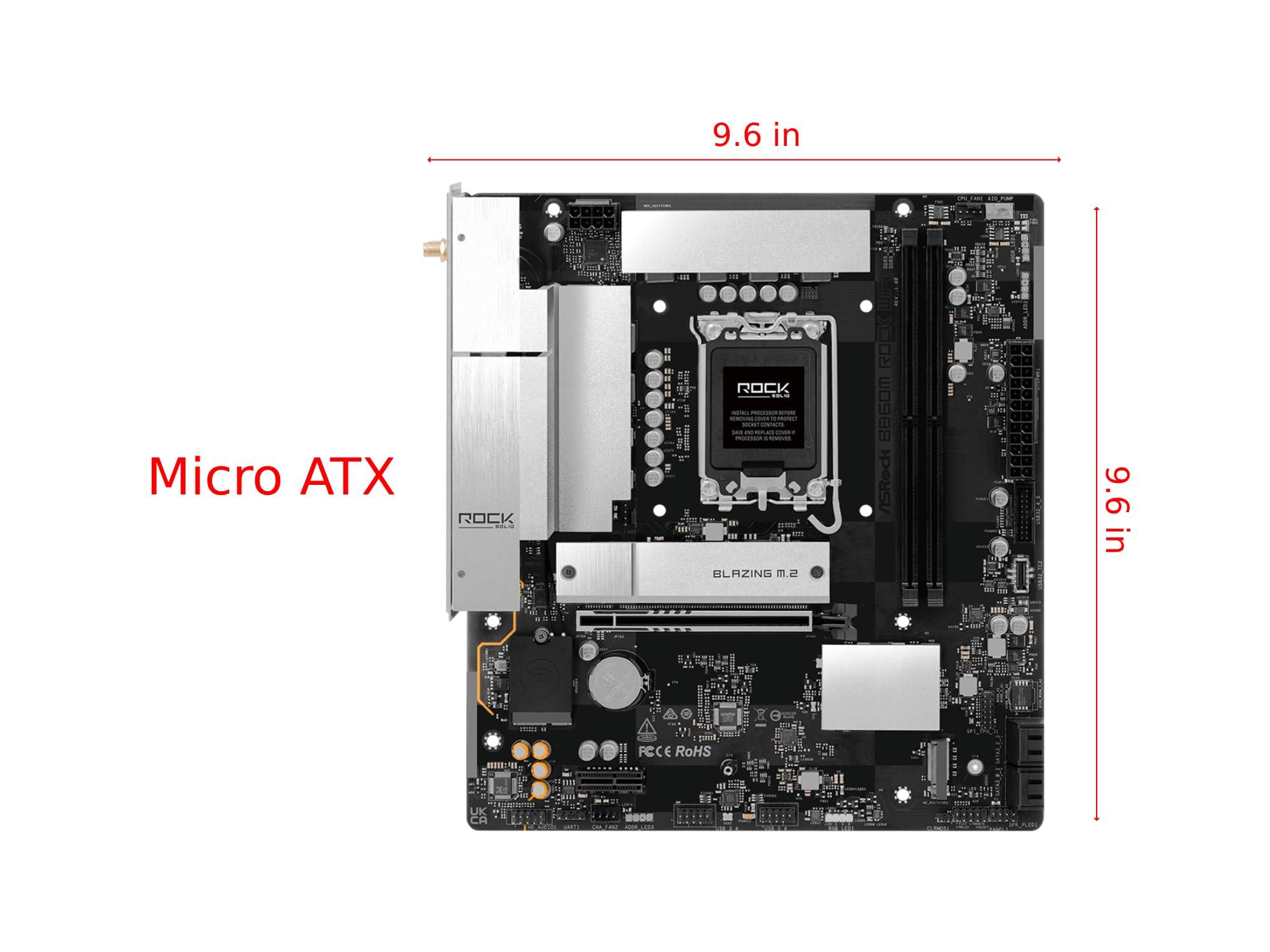 ASRock B860M Rock WiFi - Motherboard - micro ATX - LGA1851 Sockel - B860 Chipsatz - USB 3.2 Gen 1, USB-C 3.2 Gen 2x2 - 2.5 Gigabit LAN, Bluetooth, Wi-Fi 6E - Onboard-Grafik (CPU erforderlich)