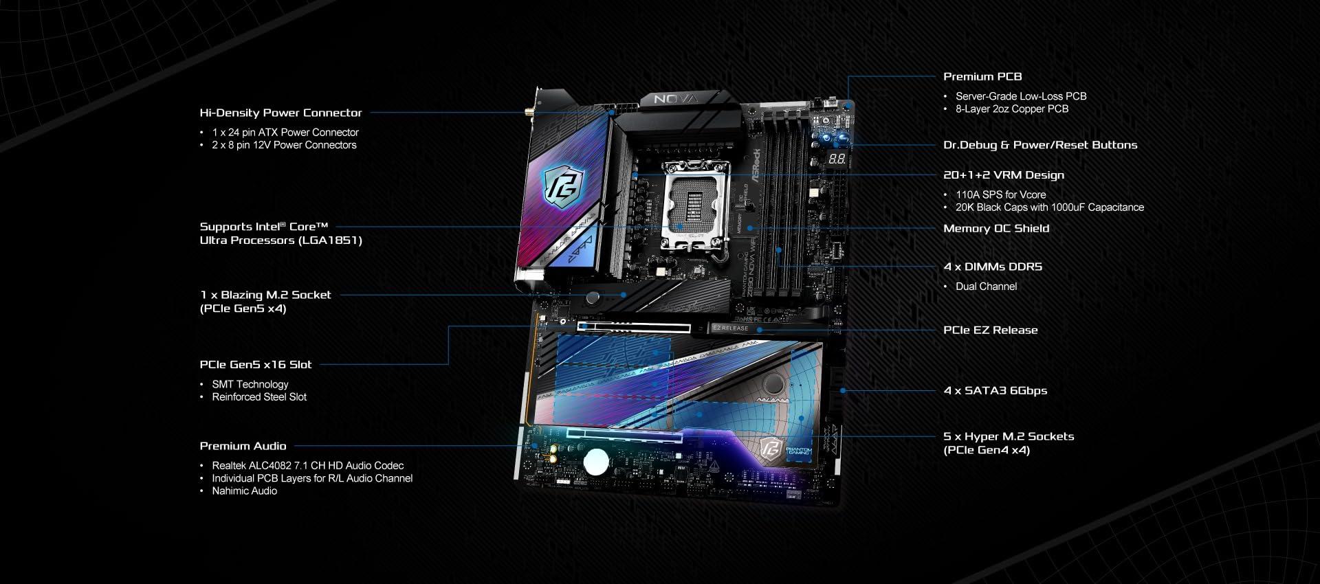 ASRock Placa Base Z890 LGA 1851 ATX Phantom Gaming Z890 Nova WiFi DDR5 Raid WiFi
