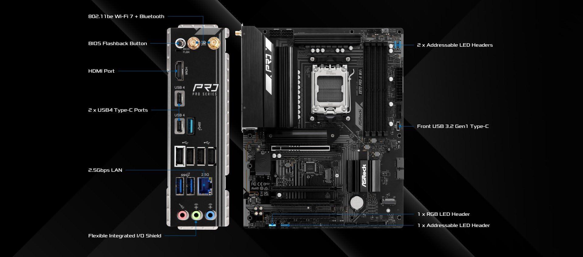 ASRock X870 Pro-A WiFi AM5 ATX HDMI/USB-C DDR5 (90-MXBT6-A0UAYZ)