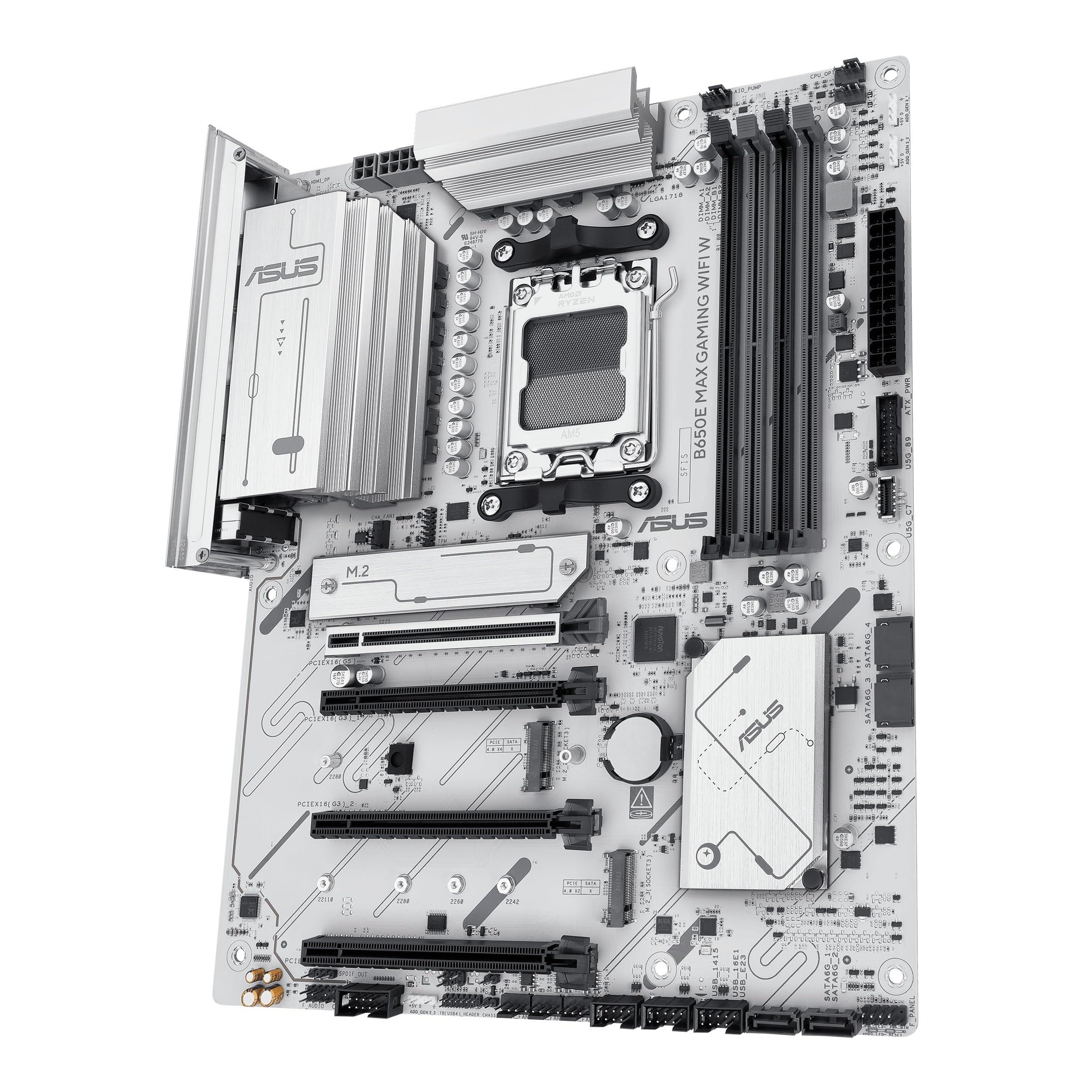ASUS B650E MAX GAMING WIFI W, Scheda Madre AMD ATX, Ryzen 9000/8000/7000, 8+2+1 Fasi Alimentazione, DDR5, PCIe 5.0, 3xM.2, Wi-Fi 6E, Lan 2.5Gb, DP, HDMI, USB-A e USB-C da 10Gbps, Aura Sync, Bianca