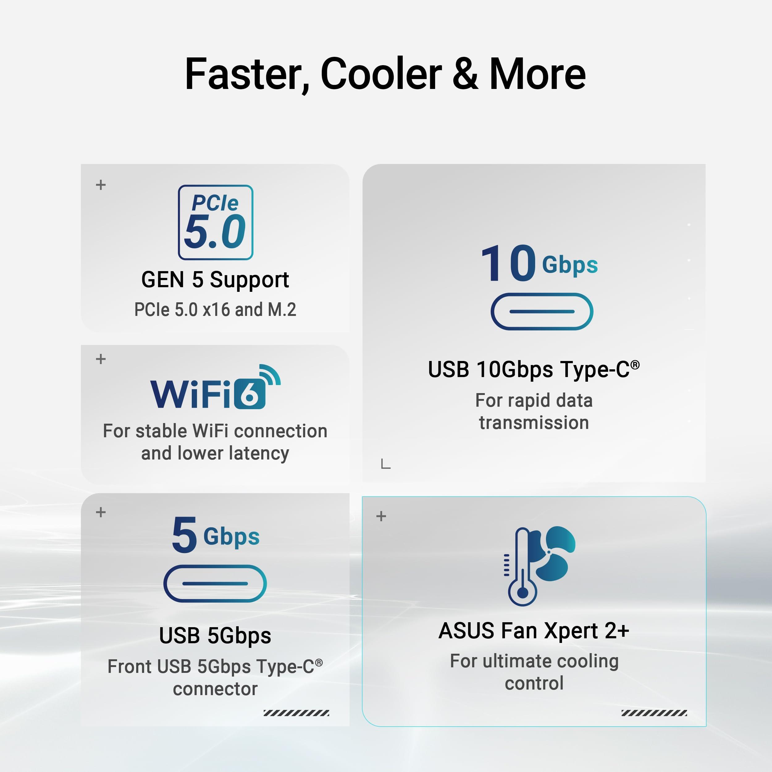 - Raffreddamento completo: dissipatori VRM e PCH, e coperture per le ventole e Fan Xpert 2+