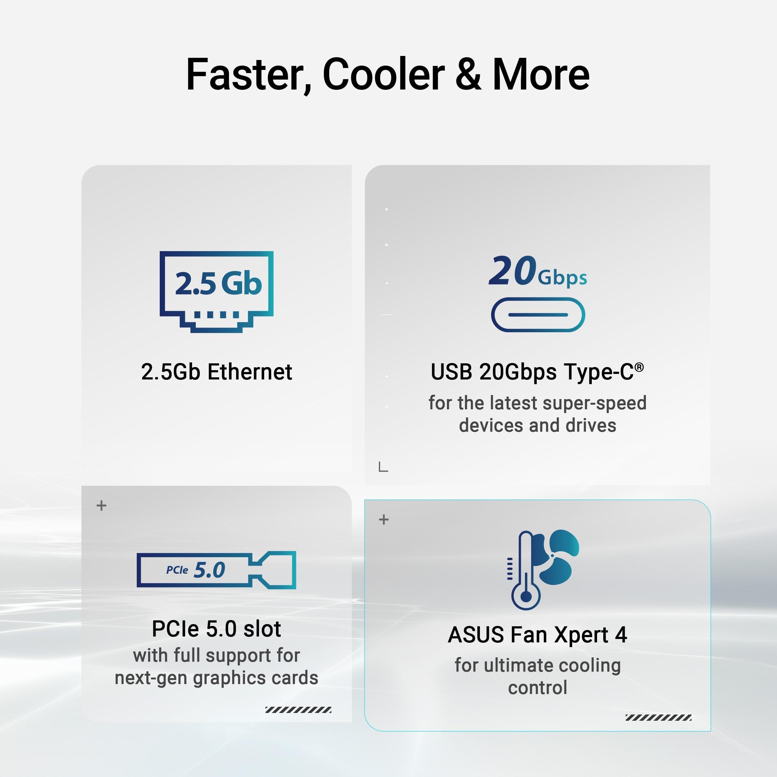 - Design termico ottimizzato: Dissipatori VRM di grandi dimensioni, dissipatori M.2 e PCH, header per ventole ibride e Fan Xpert 4 con AI Cooling II