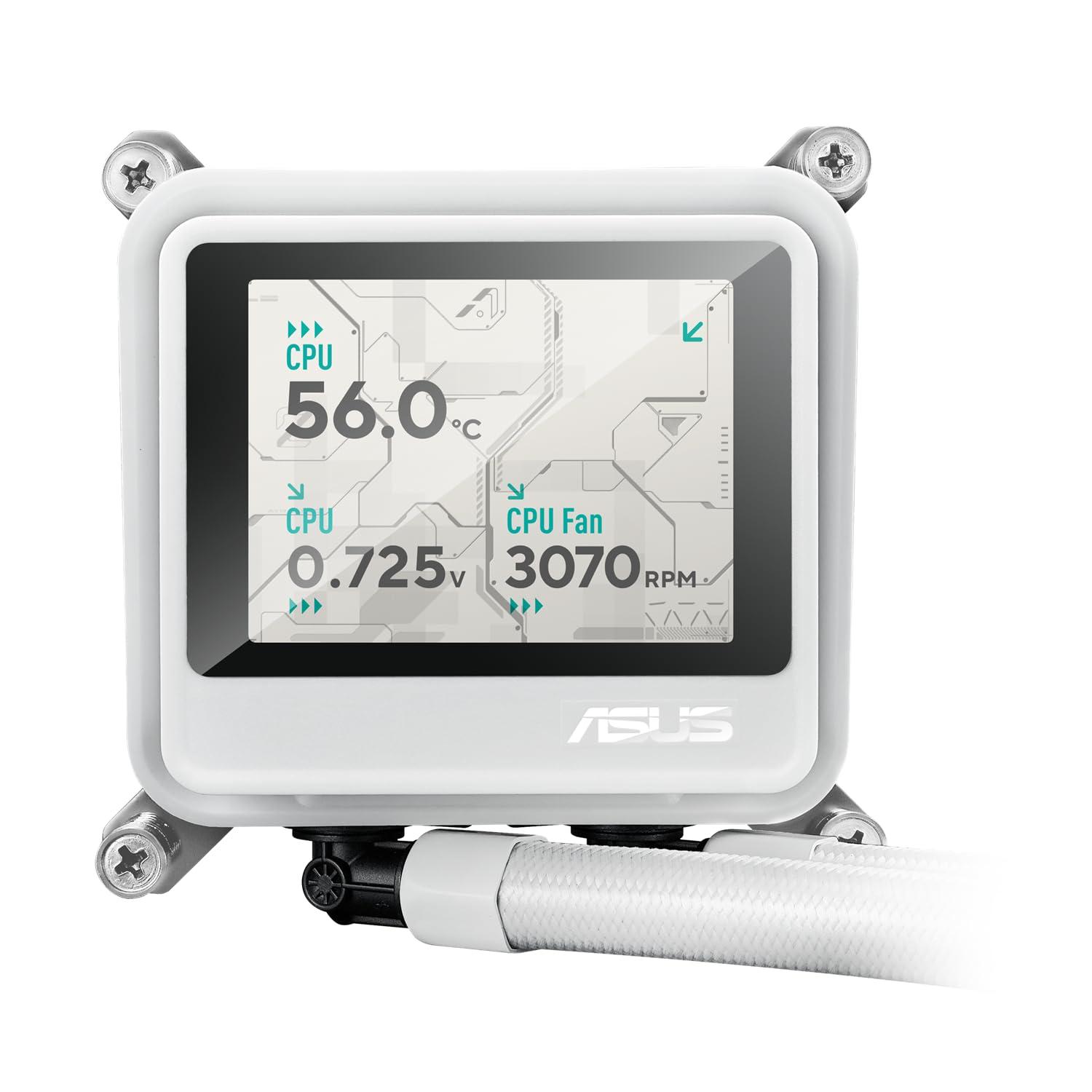 ASUS MAX Gaming LC 360 ARGB LCD White Edition, Dispositivo di Raffreddamento a Liquido All-in-One, Tre Ventole ARGB Preinstallate e Illuminazione Aura, Display IPS LCD da 2,4", Bianco