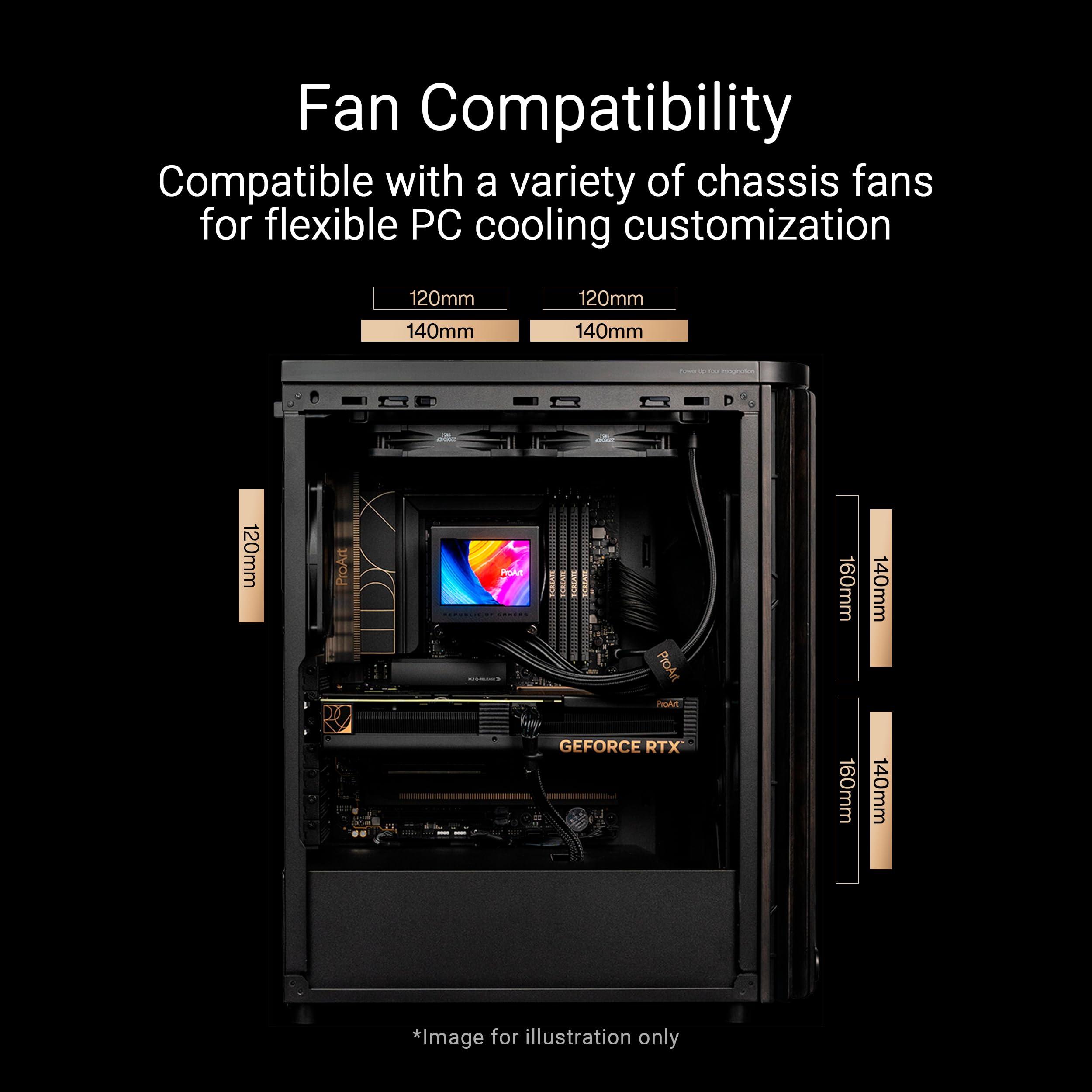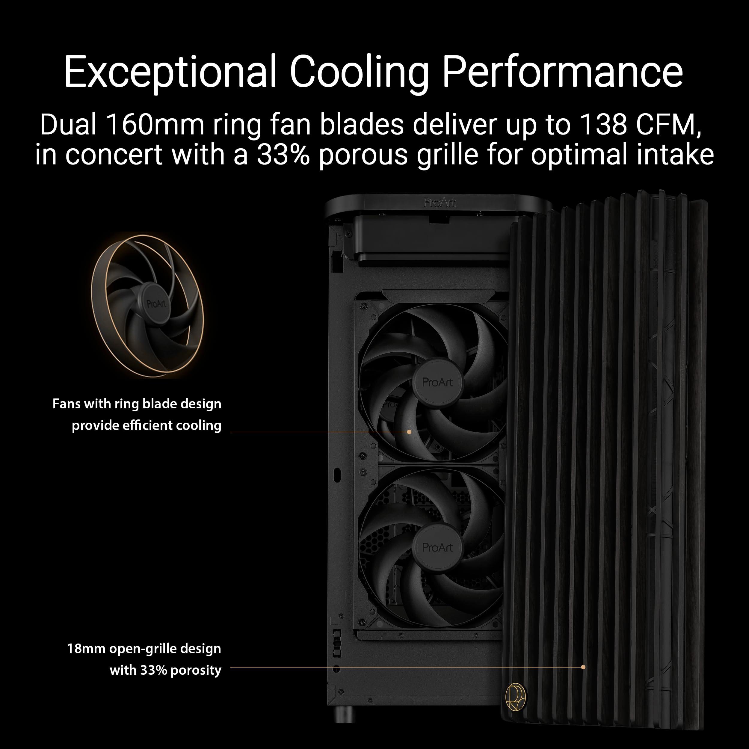 - Eccellente dissipazione termica: le esclusive pale del ventilatore anteriore a doppio anello da 160 x 32 mm forniscono un flusso d'aria fino a 138 cfm
