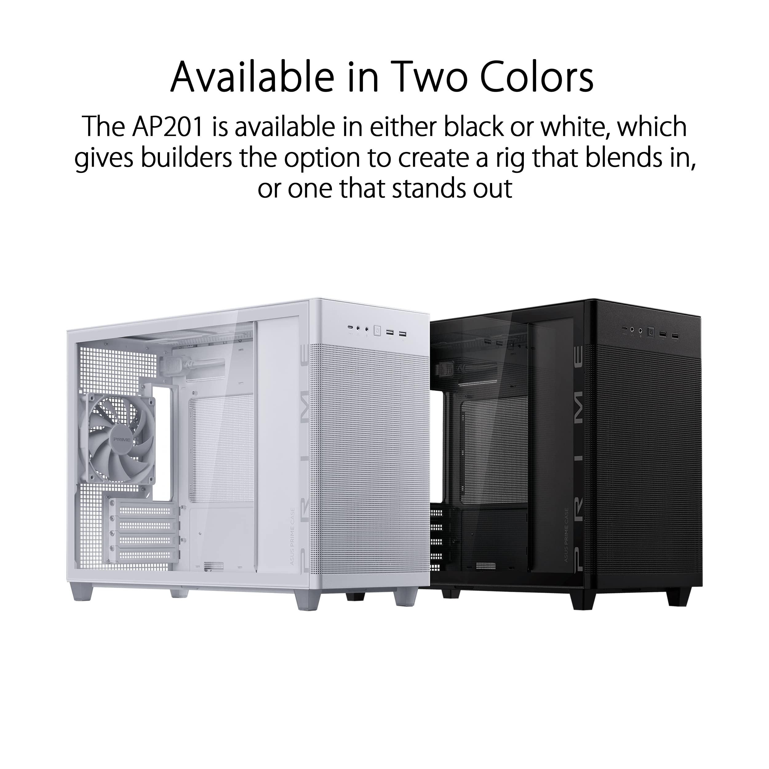 ASUS Prime AP201 TG, Case Micro-ATX, 33 litri, Pannelli Tool-free, Mesh quasi filtrante, Supporto per Dissipatori da 360 mm, Compatibile con Schede Grafiche fino a 338 mm e PSU ATX standard, Nero