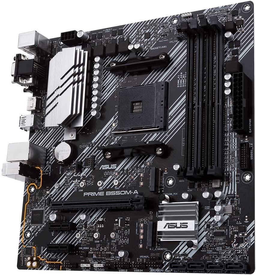 ASUS PRIME B550M-A/CSM Scheda Madre microATX, AMD B550, Socket AM4, DDR4, PCIe 4.0, LAN Realtek 1Gb, 2xM.2, 4xSATA 6GB/s, 7.1 Surround, Supporto Aura Sync RGB, ASUS Control Center Express, Nero