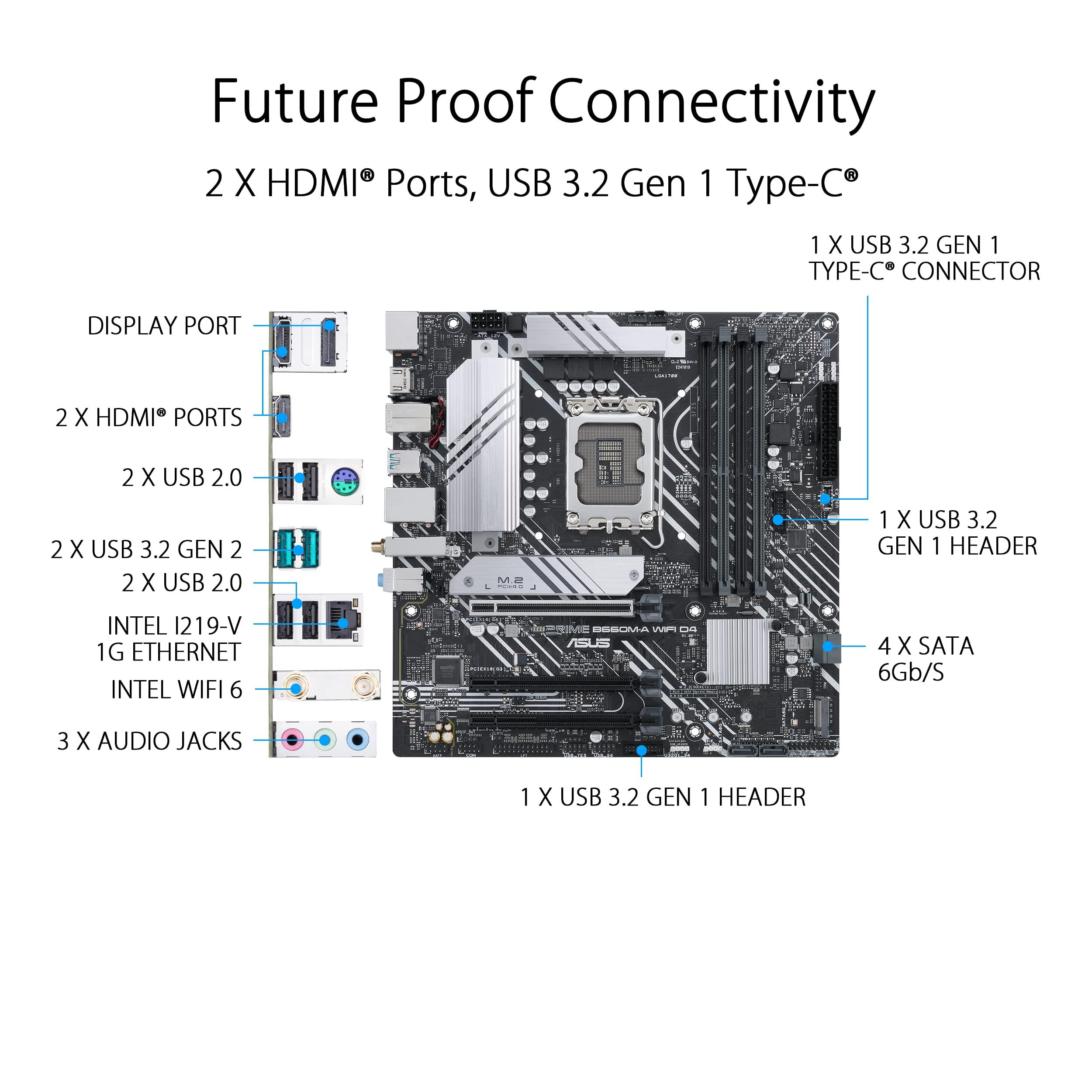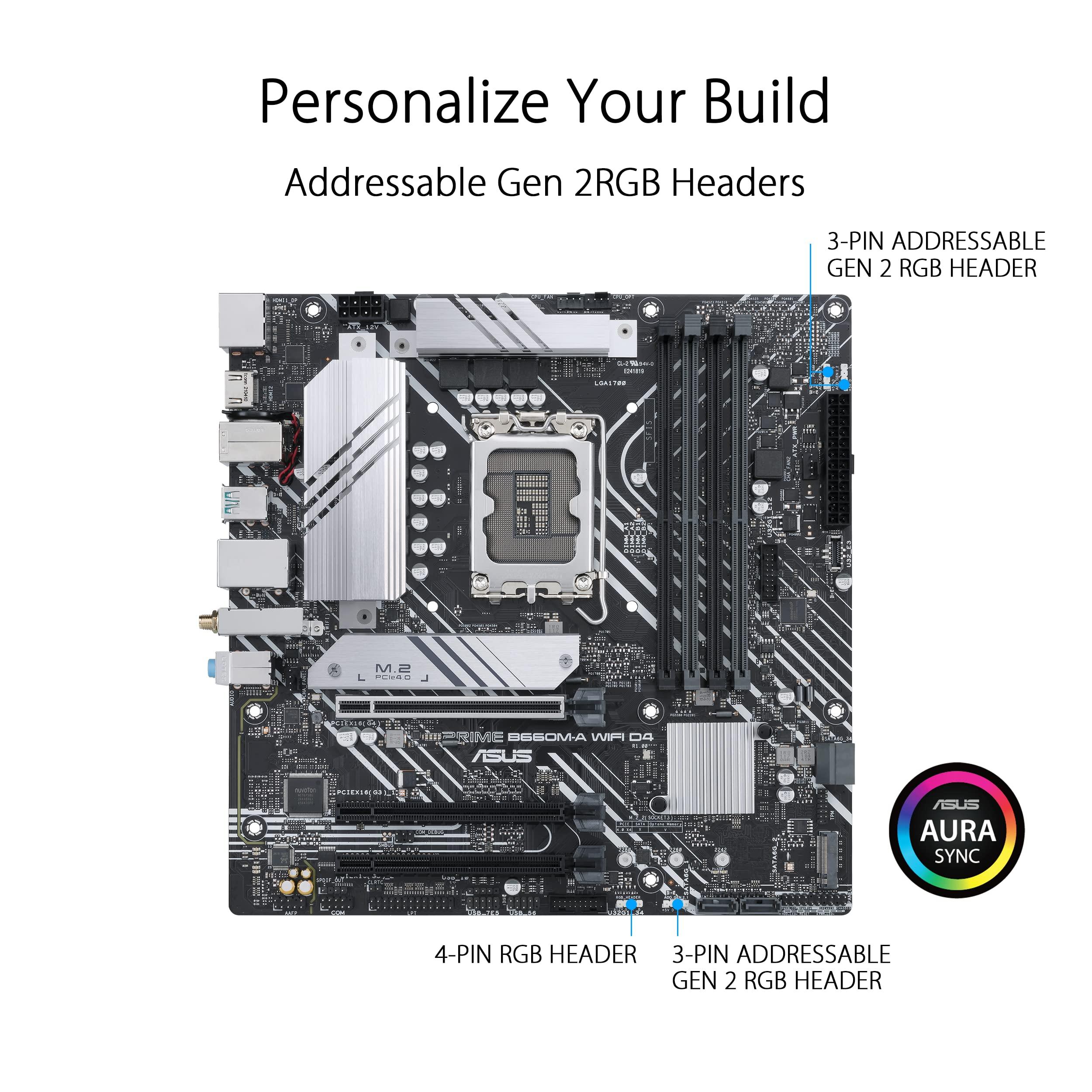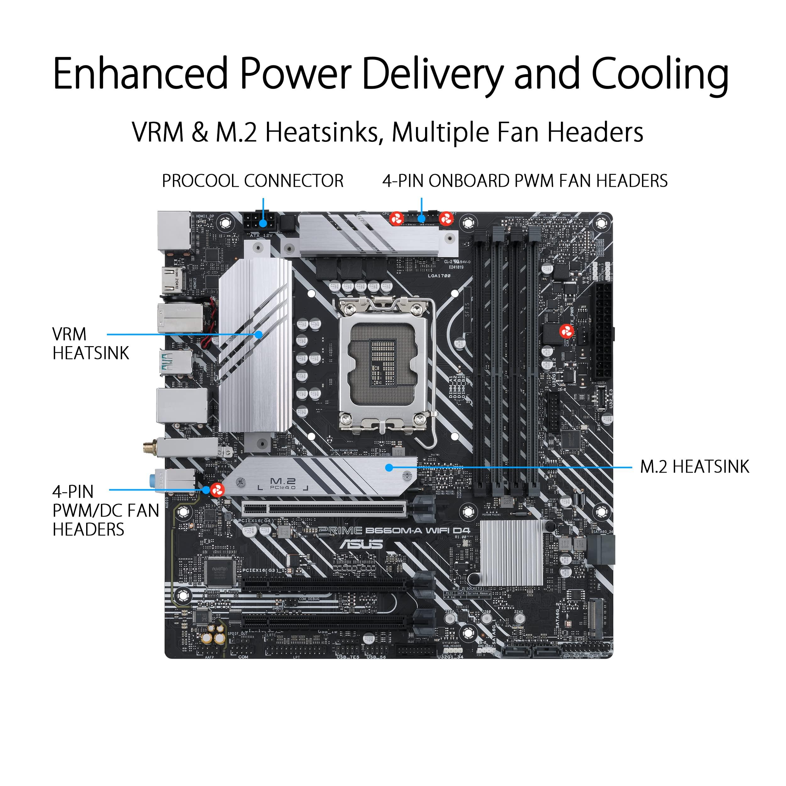 ASUS PRIME B660M-A WiFi D4 Scheda Madre mATX, Intel B660, LGA1700, DDR4, PCI 4.0, LAN Intel 1Gb, WiFi 6, Realtek 7.1 Surround, 2xM.2, 4xSATA 6GB/s, USB 3.2 Gen 2, Armoury Crate, Nero