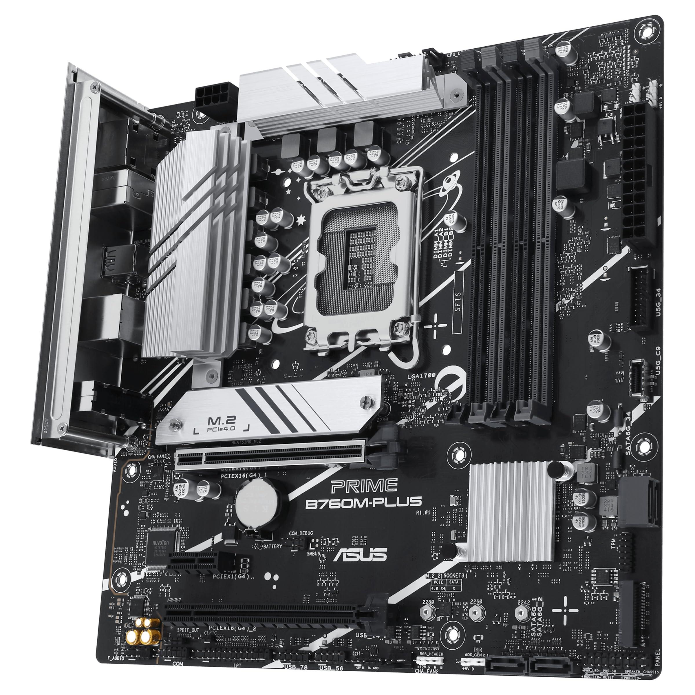 ASUS PRIME B760M-PLUS Scheda madre Intel (LGA 1700) mATX, PCIe 4.0, 2 slot M.2, Realtek 2,5 Gb Ethernet, DisplayPort, HDMI TM, SATA 6 Gbps, USB 10 Gbps, IO Shield premontato, Aura Sync, Nero