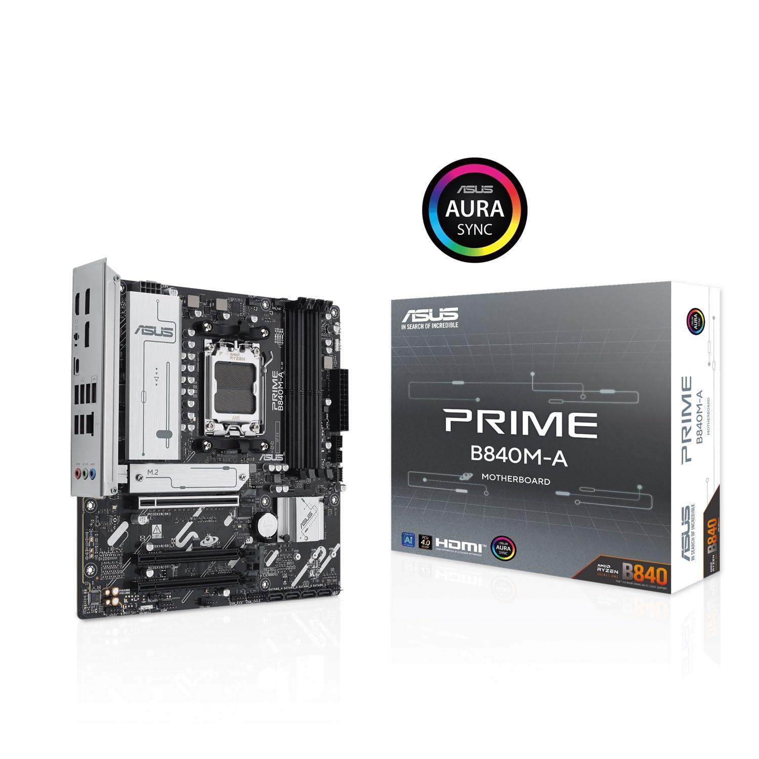 ASUS PRIME B840M-A, Scheda Madre AMD mATX, Slot DDR5, PCIe 4.0 Ready, 3 slot M.2, Ethernet Realtek 2,5 GB, DisplayPort, HDMI, USB-C da 5 Gbps Fronte e Retro, BIOS Flashback e Aura Sync