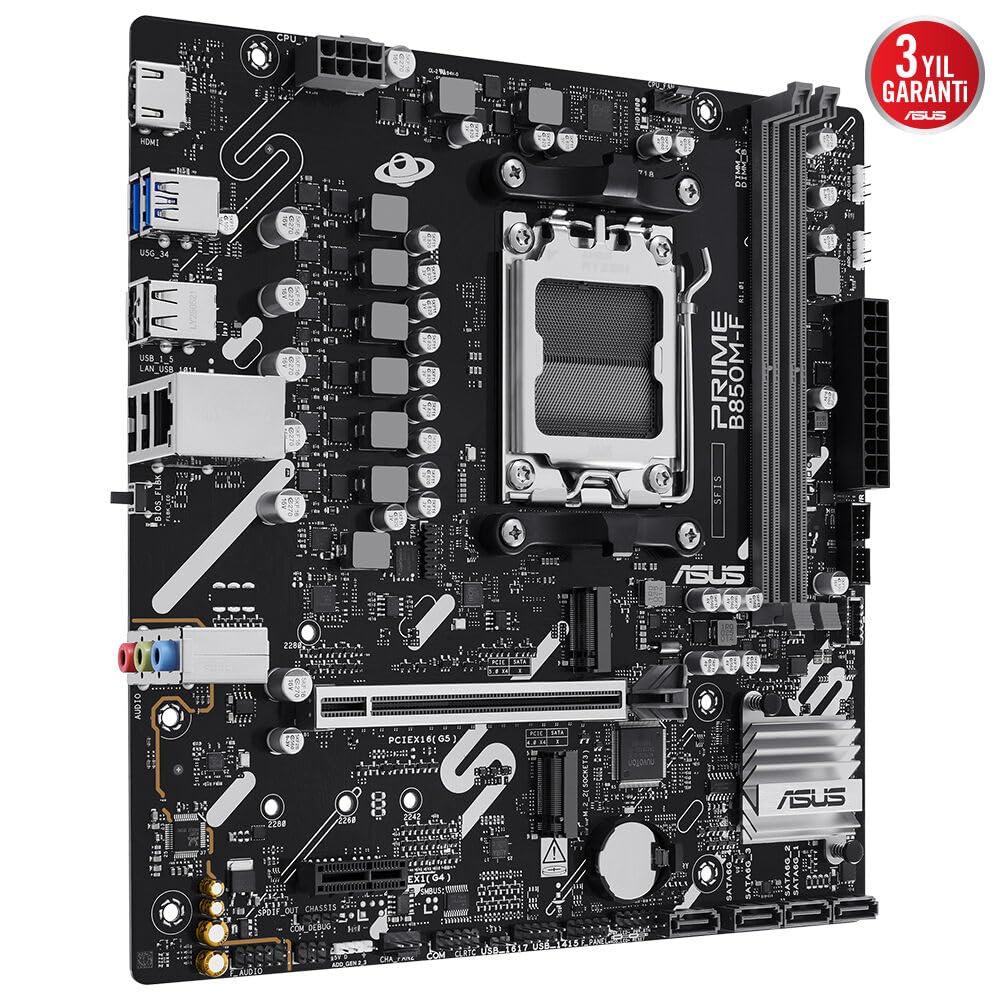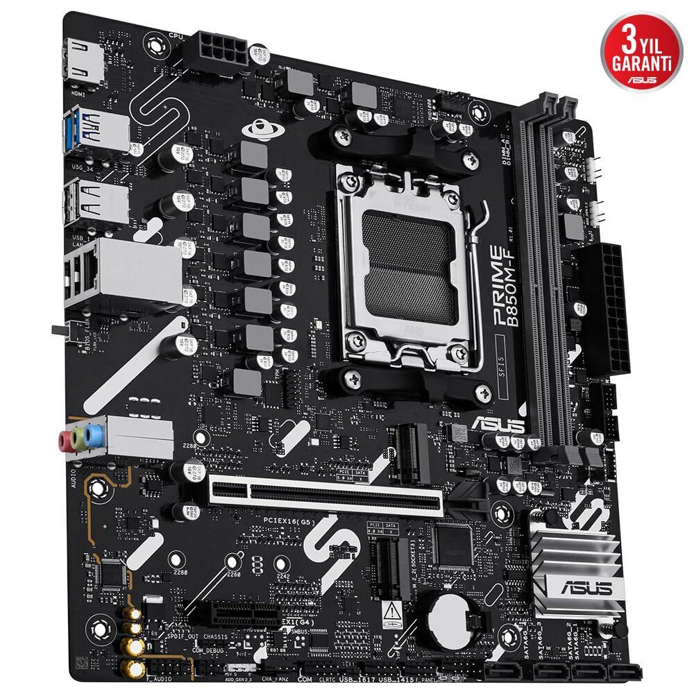 ASUS PRIME B850M-F, Scheda Madre AMD micro-ATX, Slot DDR5, PCIe 5.0 Ready, 2 Slot M.2, Ethernet Realtek 1Gb, HDMI, USB-A da 5Gbps, USB-C da 5Gbps, BIOS FlashBack, Aura Sync, Nera