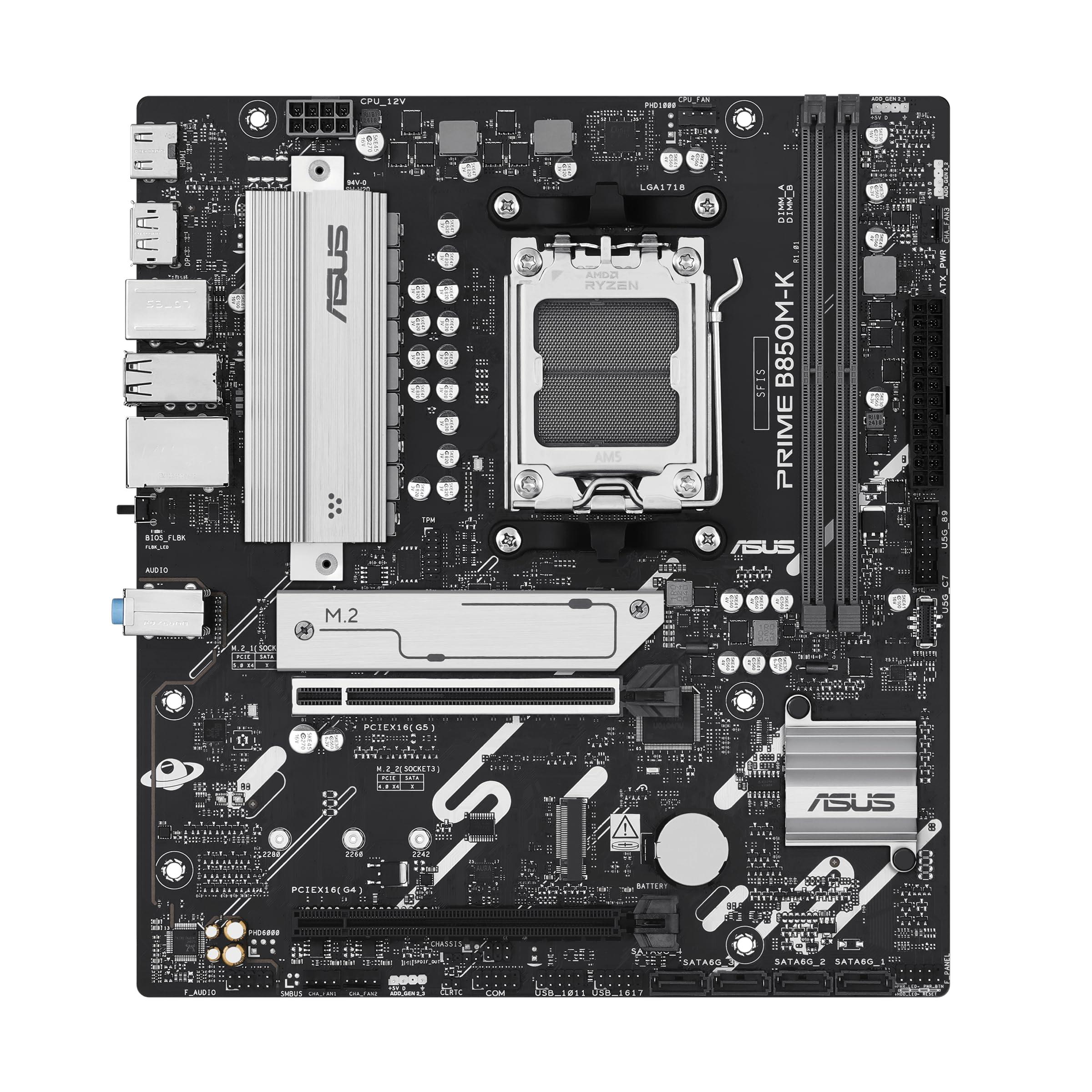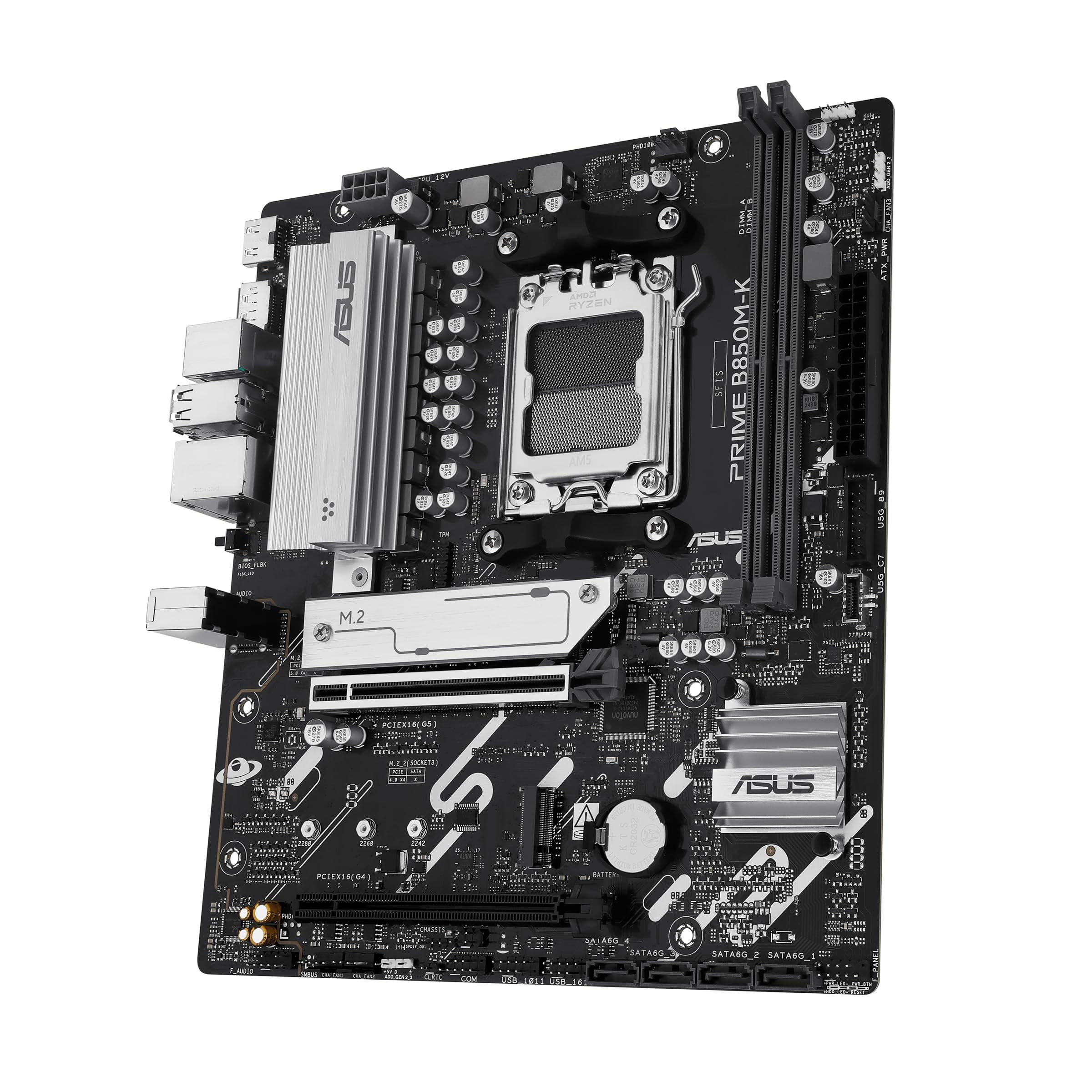 ASUS PRIME B850M-K, Scheda Madre AMD micro-ATX, 8+2+1 Fasi di Alimentazione, Slot DDR5, PCIe 5.0, 2 Slot M.2, Ethernet Realtek 2.5Gb, DisplayPort, HDMI, USB-A da 10Gbps e USB-C da 5Gbps, Aura Sync