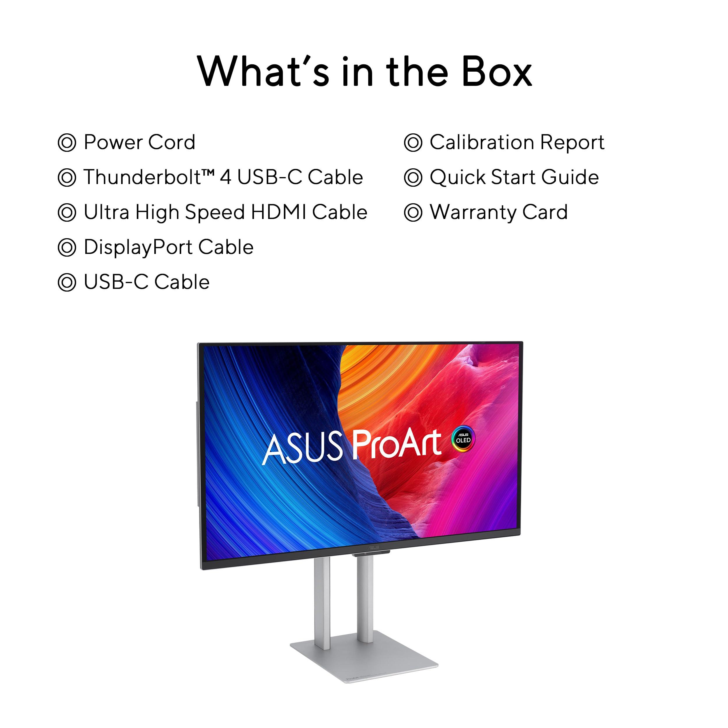 ASUS ProArt Display OLED PA27UCDMR, Monitor Professionale da 26,5", 4K UHD QD-OLED (3840 x 2160), QD-OLED, 240Hz, 0.1ms, Ultra sottile, Auto Calibrazione, Dolby Vision, Supporto Ergonomico, Nero