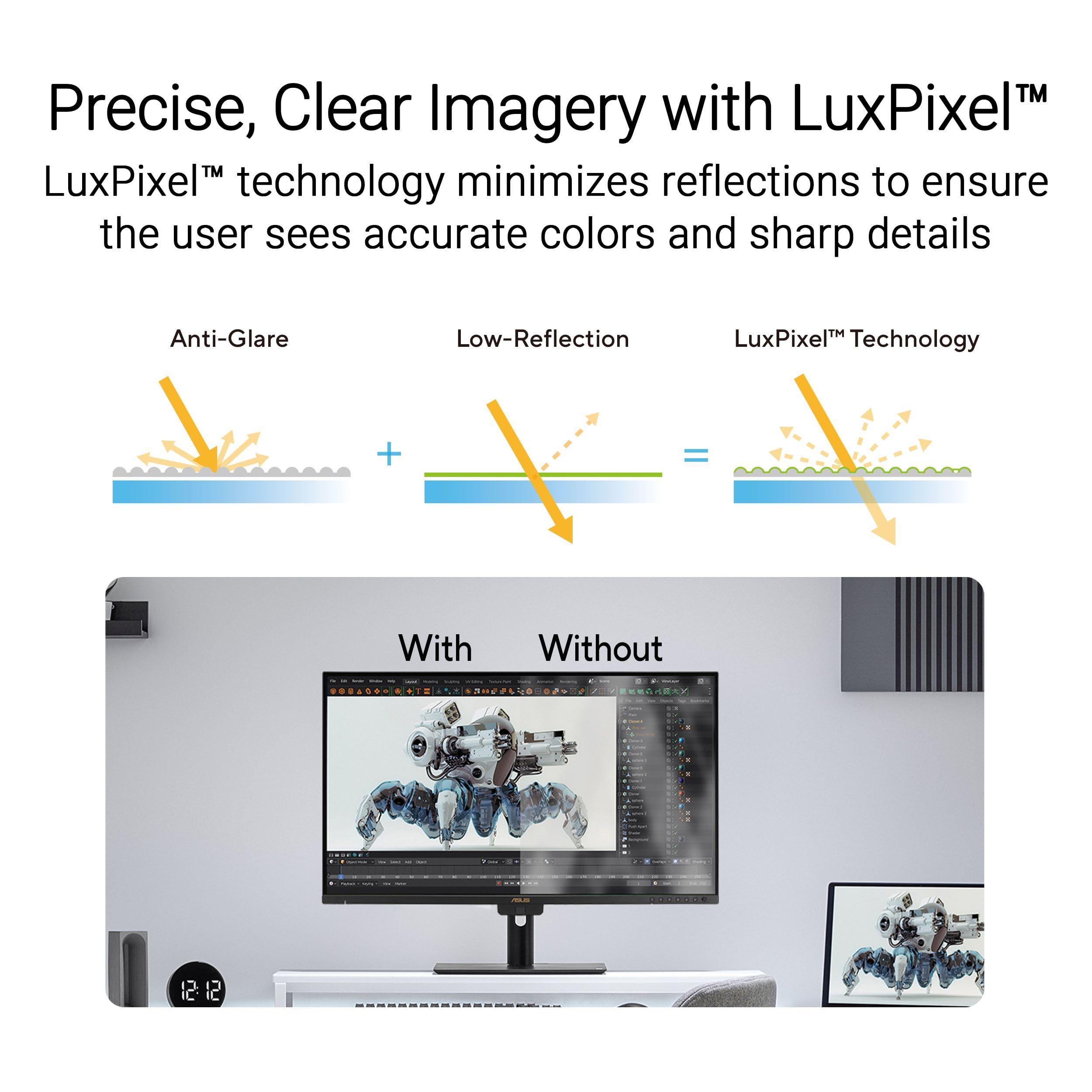 - Il colorimetro incorporato supporta la calibrazione automatica, e i software di calibrazione Calman e Light Illusion ColourSpace CMS; la tecnologia ASUS Light Sync con sensore di luce ambientale e retroilluminazione garantisce prestazioni cromatiche affidabili