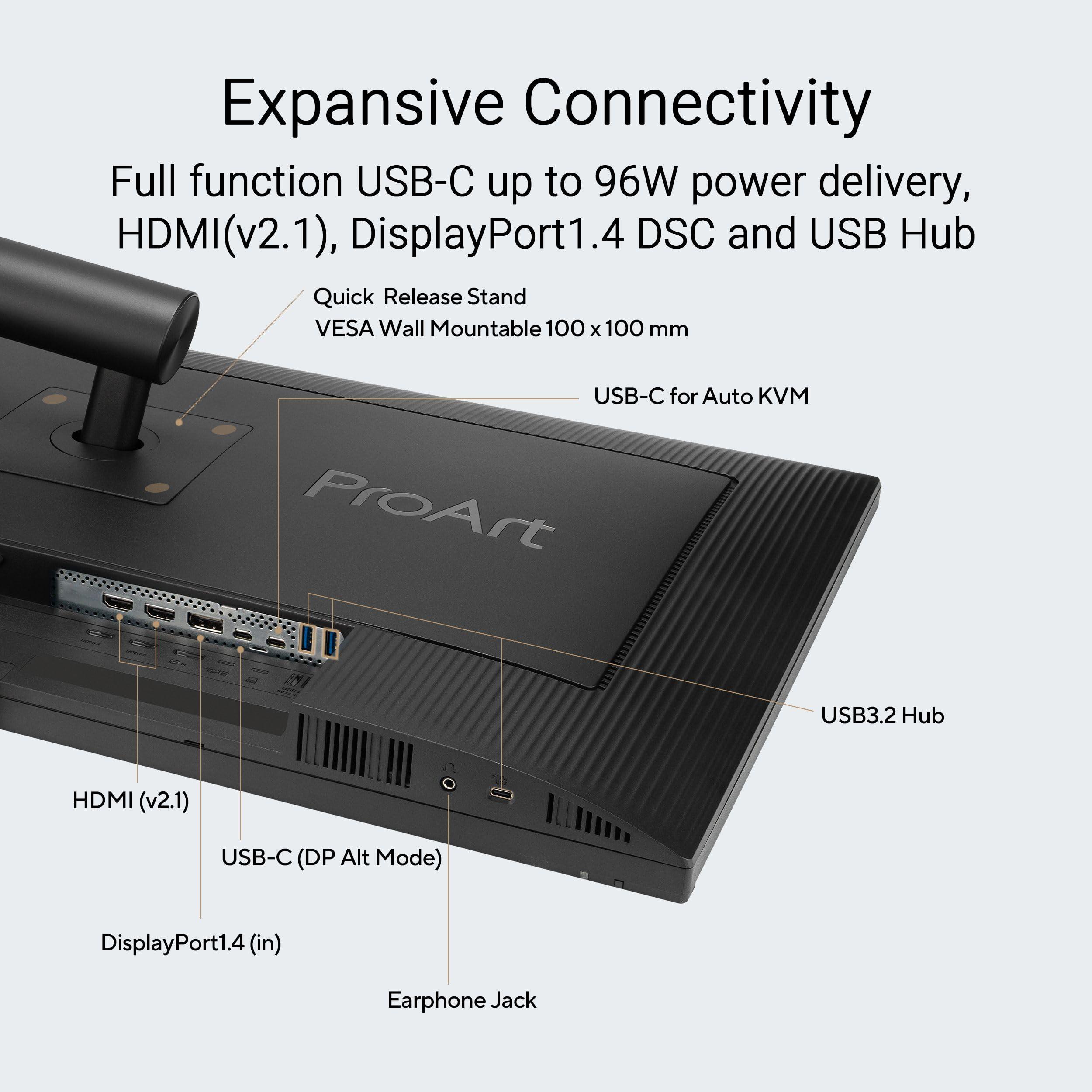 ASUS ProArt Display PA27UCGE, Monitor Professionale 4K HDR IPS da 27" (3840 x 2160), 160 Hz, 600 nits, 98% DCI-P3, Auto Calibrazione, Supporto Ergonomico, Porte USB-C, DisplayPort, HDMI, Nero