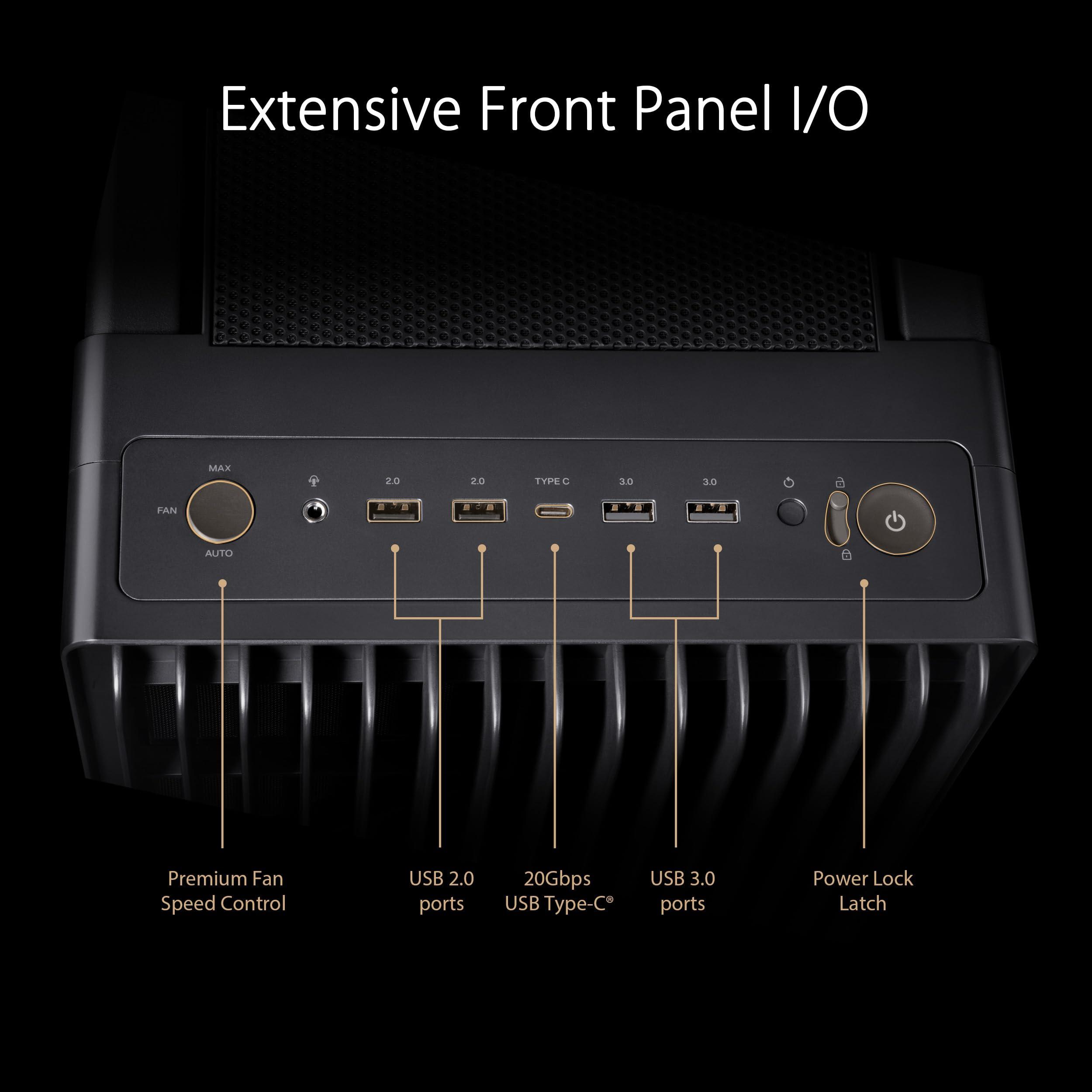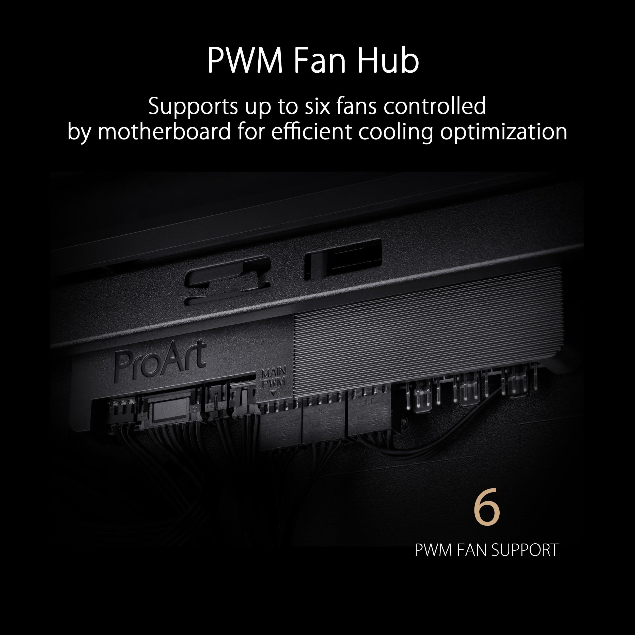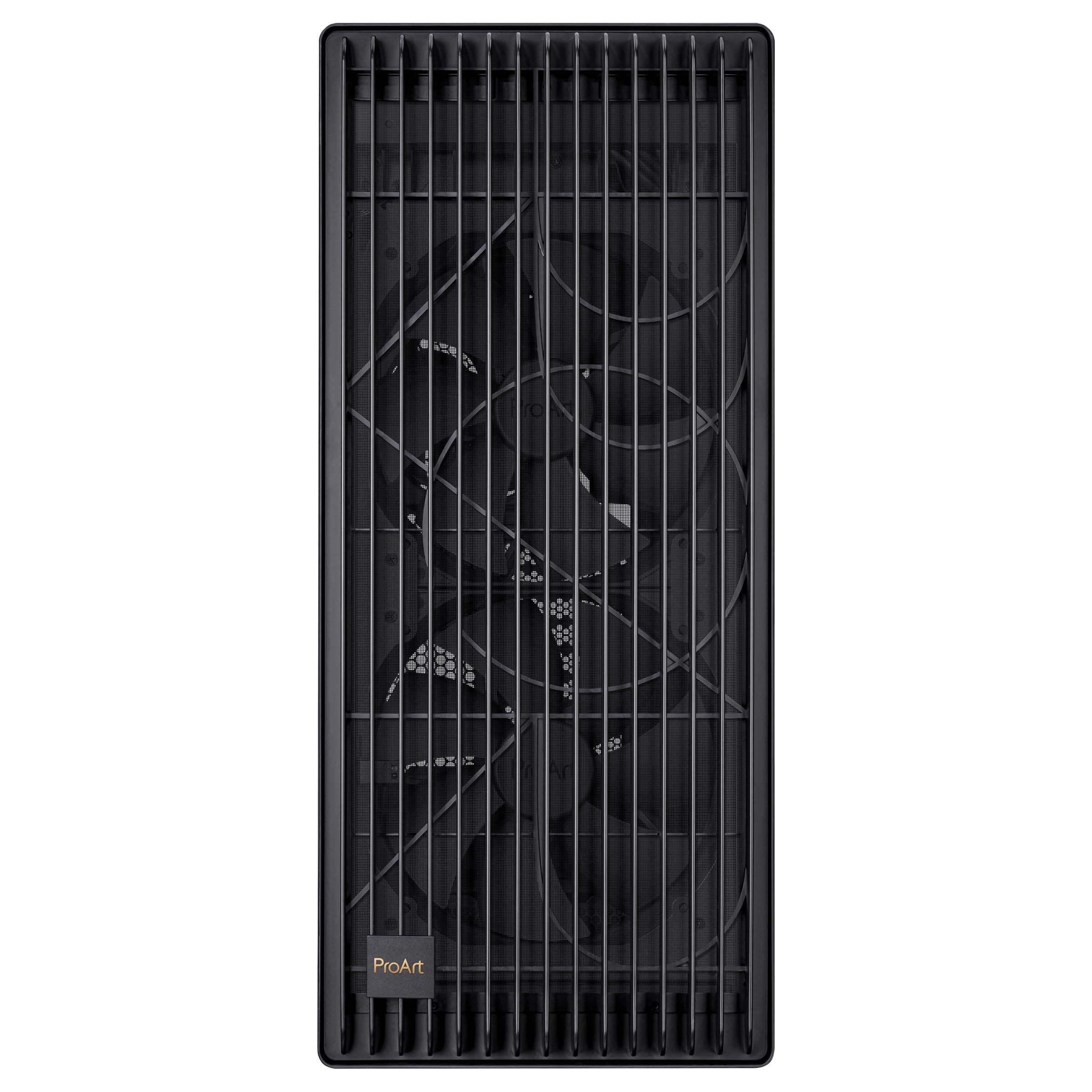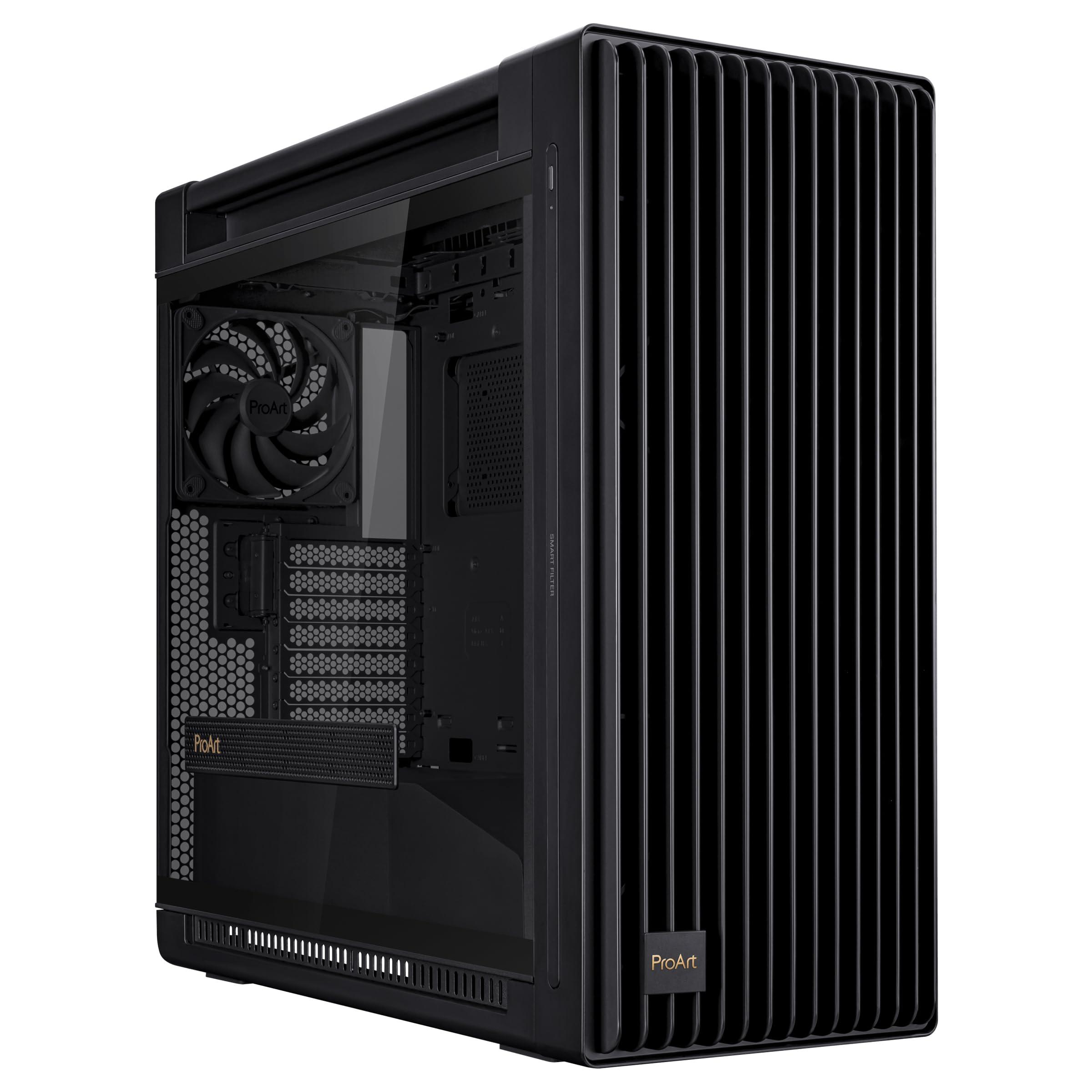 ASUS PROART PA602 TG PWM BLACK Case Gaming E-ATX, Chassis in Vetro Temperato, Supporto per Dissipatore da 420 mm, Ventole da 140 mm e 200 mm, Rilevatore di Polvere IR, Presa d’aria Laterale, Nero