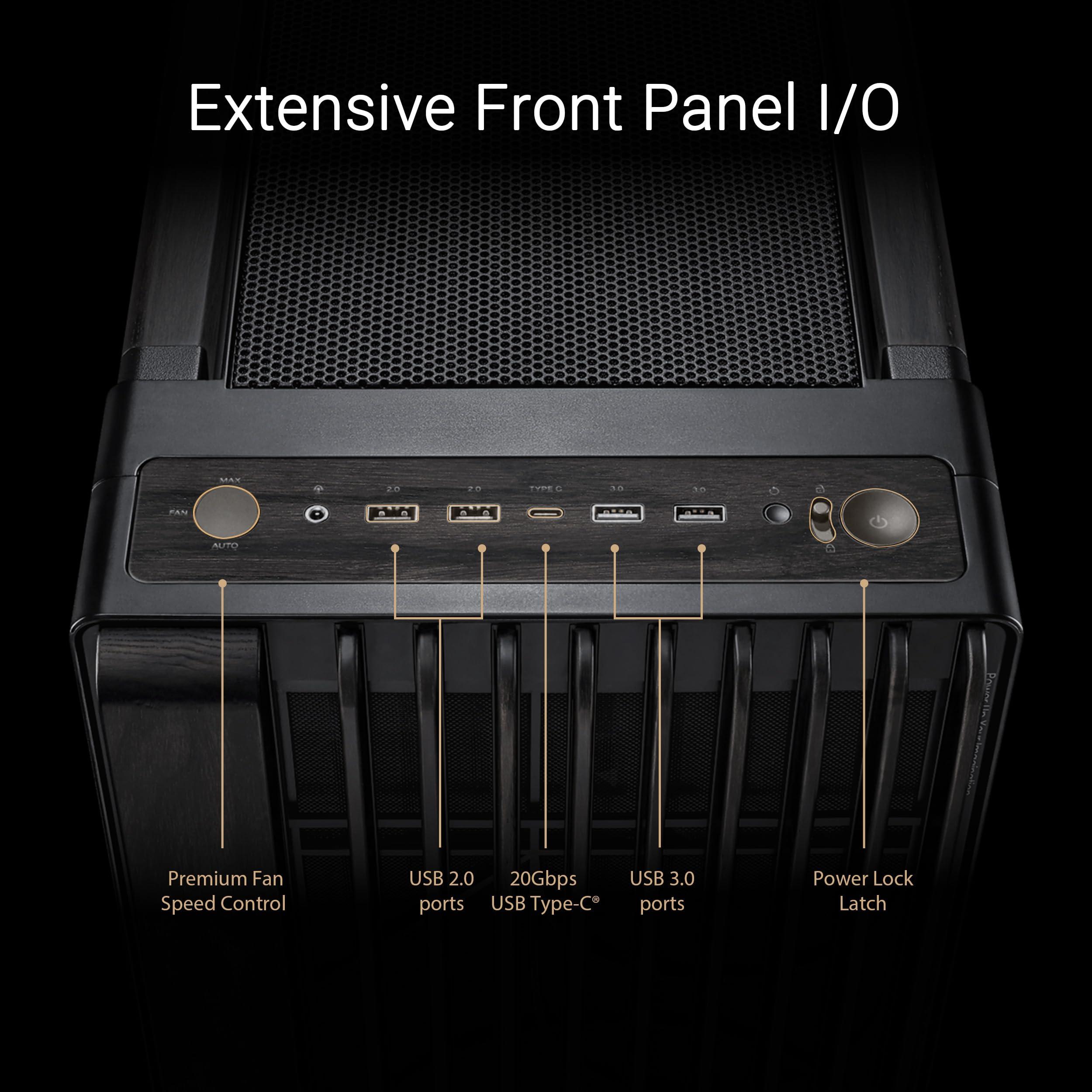 - Estetica elegante: case minimalista tipico del design ProArt, realizzato in legno di frassino e disponibile in due versioni, con pannello laterale in metallo o in vetro temperato, per un maggior fascino estetico