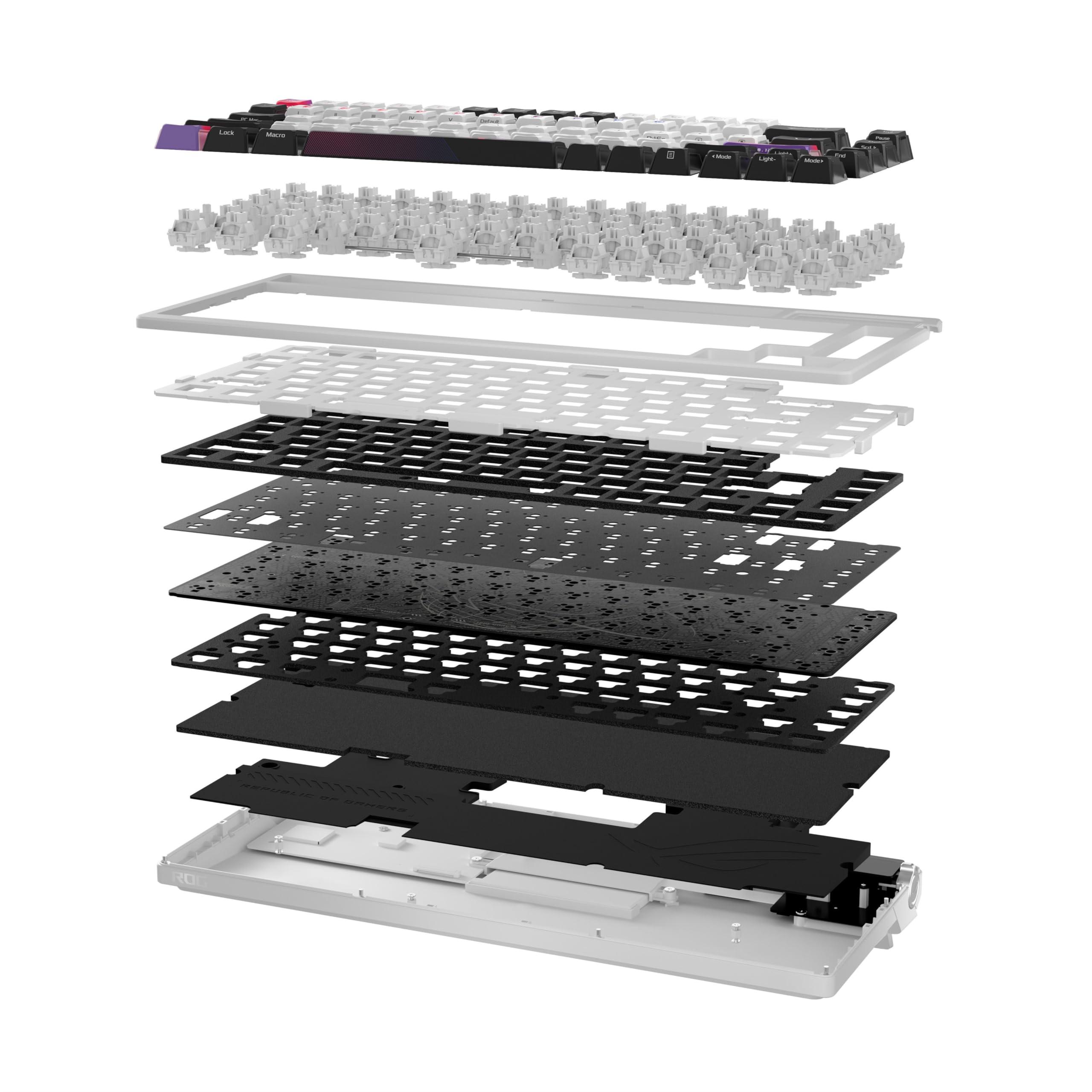 Asus La tastiera da gioco wireless ROG Azoth X offre una soluzione compatta ed elegante sia per il gioco che per la scrittura. La robusta struttura con pannello in metallo e ammortizzazione avanzata rende ogni pressione del pulsante piacevole e silenziosa. L'illuminazione RGB evidenzia il design dei tasti e rende la scrivania più vivace. Il comodo poggiapolsi consente di utilizzare la tastiera durante lunghe sessioni senza compromettere il comfort.