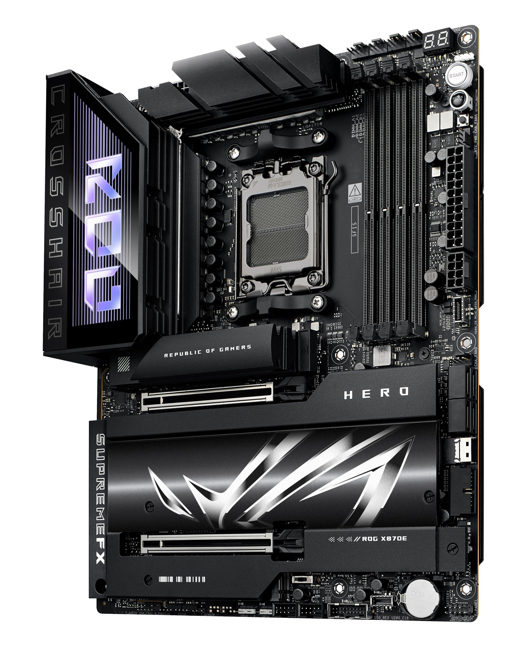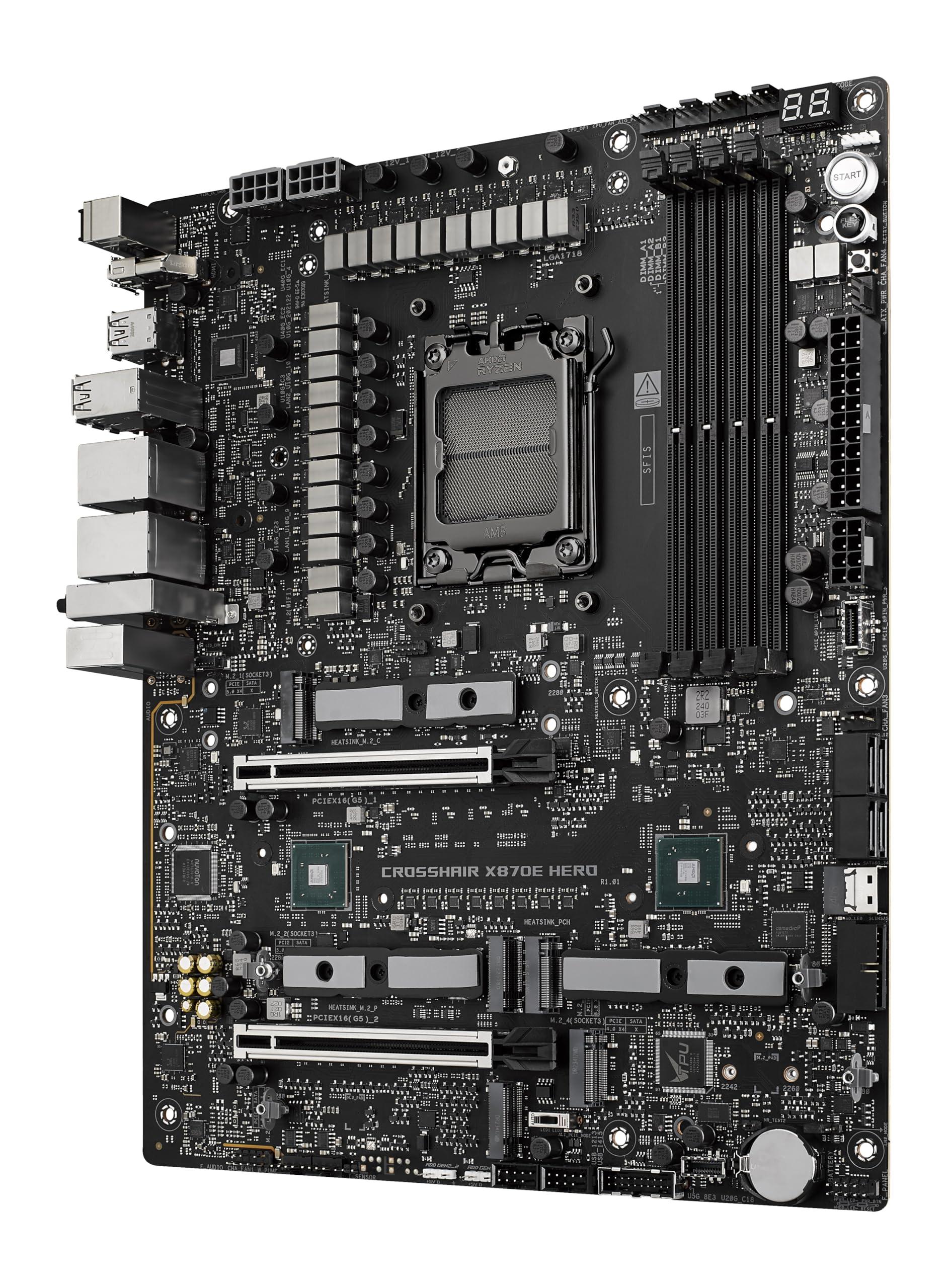 ASUS ROG Crosshair X870E Hero ATX, 18+2+2 stadi di alimentazione, slot DDR5, PCIe 5.0, le GPU di nuova generazione, cinque slot M.2, Wi-Fi 7, USB4, AI Overclocking, Slot PCIe Q-Release Slim