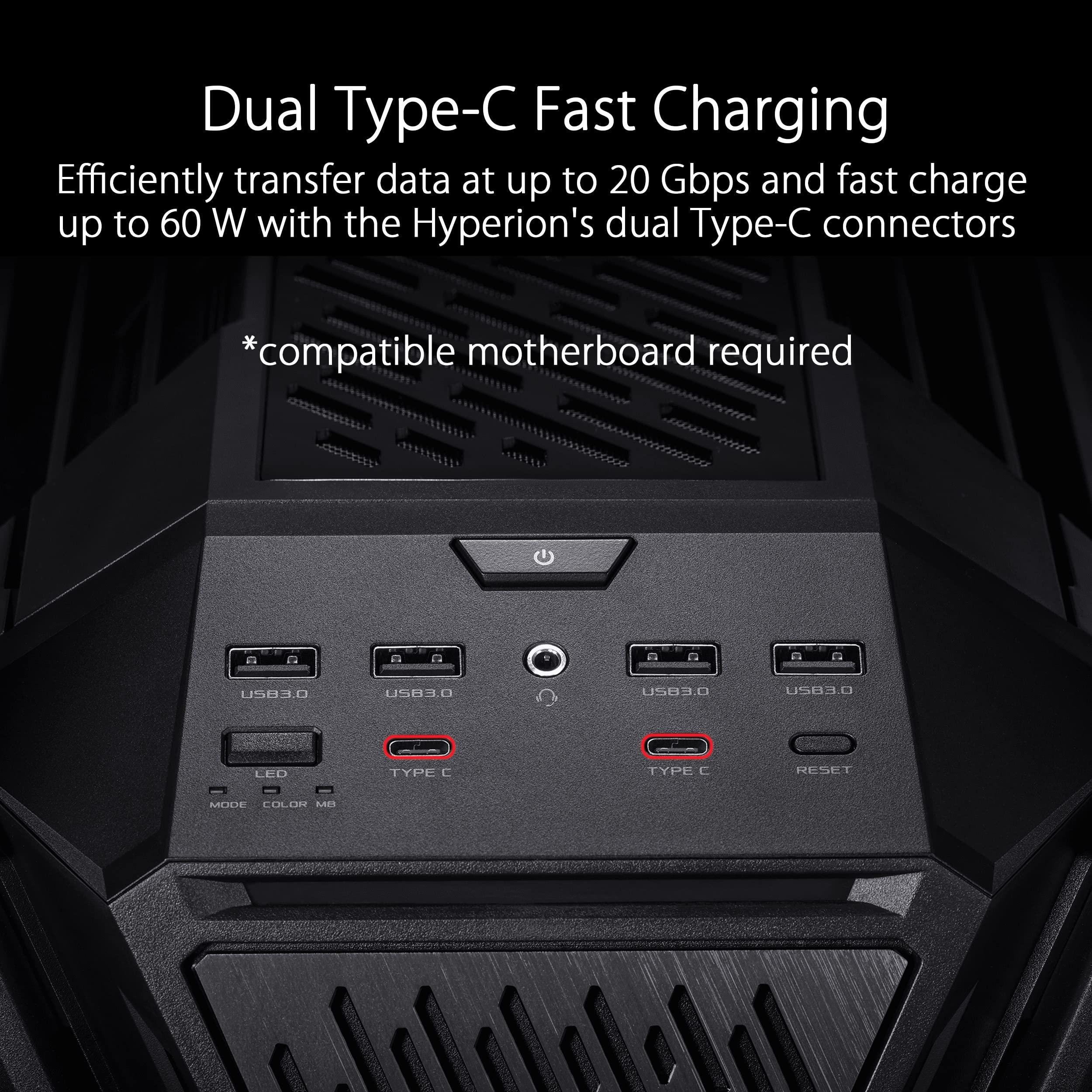 ASUS ROG Hyperion GR701, Case Gaming E-ATX, Full Tower in Alluminio, Pannelli Tool-free, Illuminazione RGB, Supporto per Dissipatori da 360 mm, Compatibile con Schede Grafiche fino a 460 mm, Nero