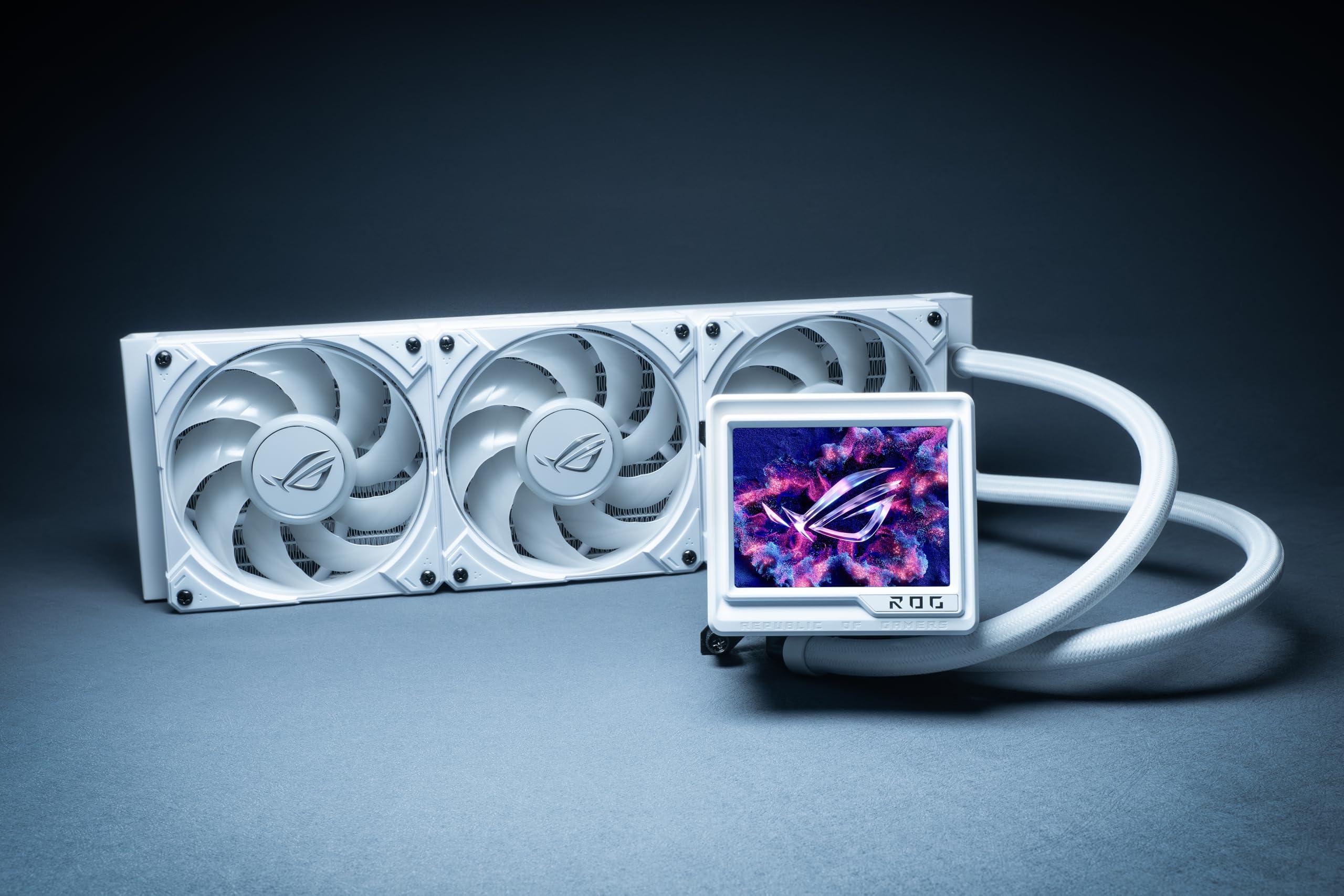 ASUS ROG Ryujin III 360 ARGB Extreme White, Dissipatore a Liquido All-In-One con Pompa Emma Gen8 V2, Tre Ventole ROG RGB per un Elevato Flusso d'Aria, Schermo LCD da 3,5" per Monitoraggio, Bianco