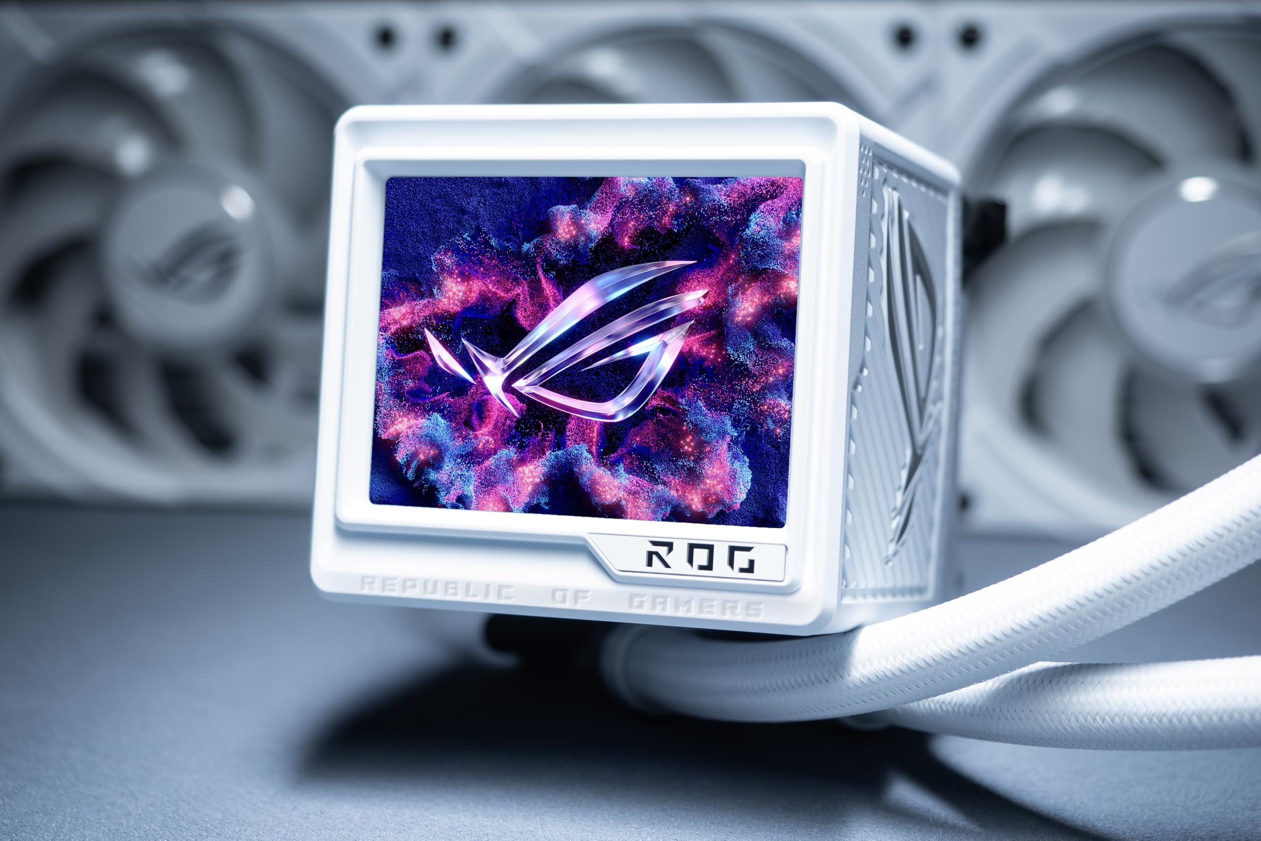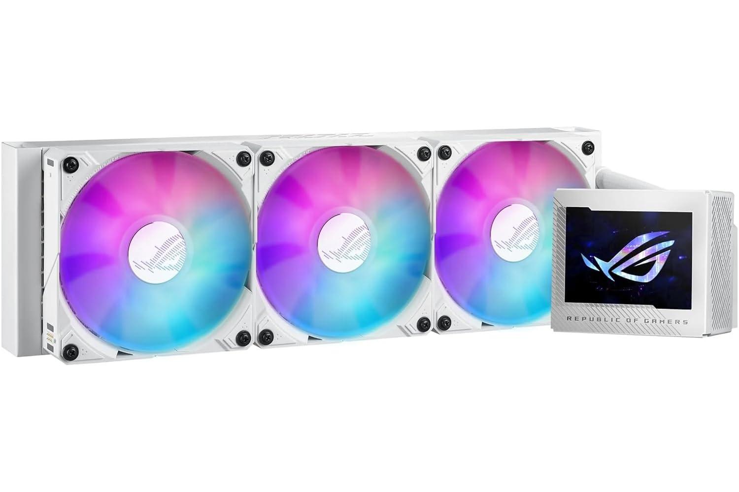 ASUS ROG Ryujin III 360 ARGB Extreme White, Dissipatore a Liquido All-In-One con Pompa Emma Gen8 V2, Tre Ventole ROG RGB per un Elevato Flusso d'Aria, Schermo LCD da 3,5" per Monitoraggio, Bianco